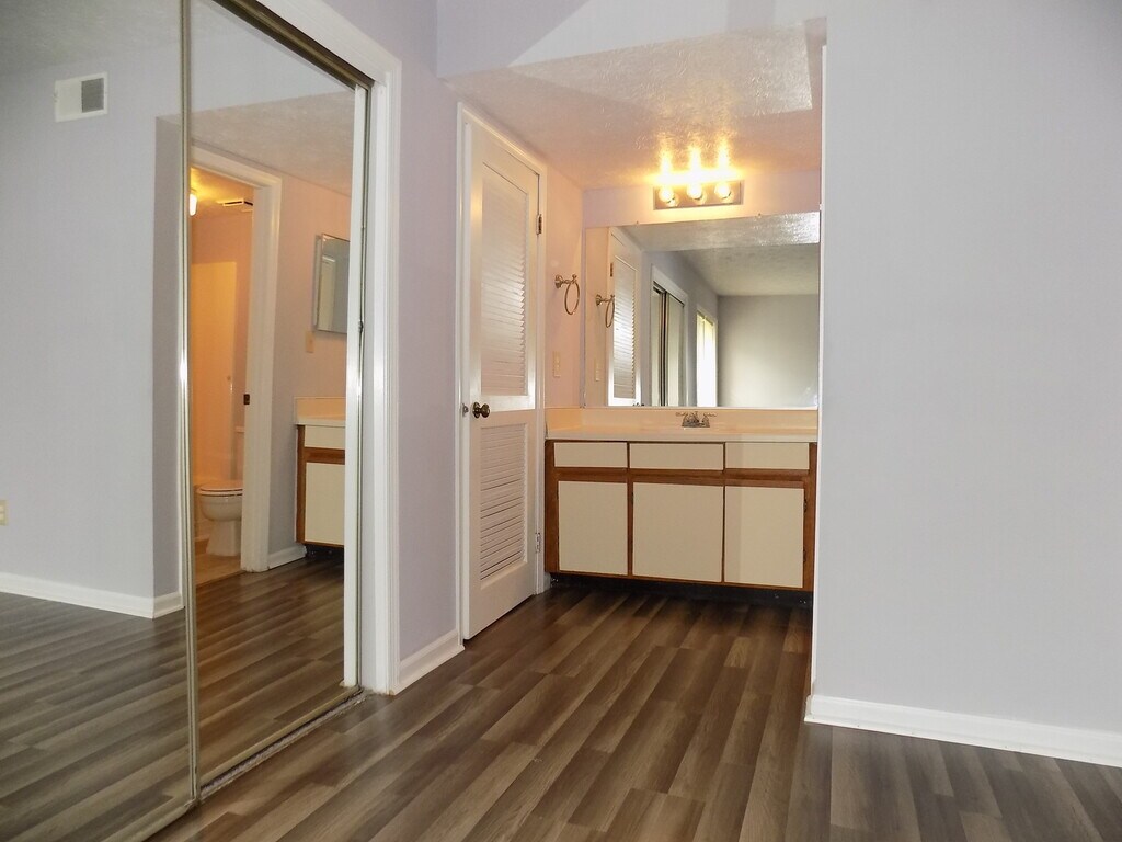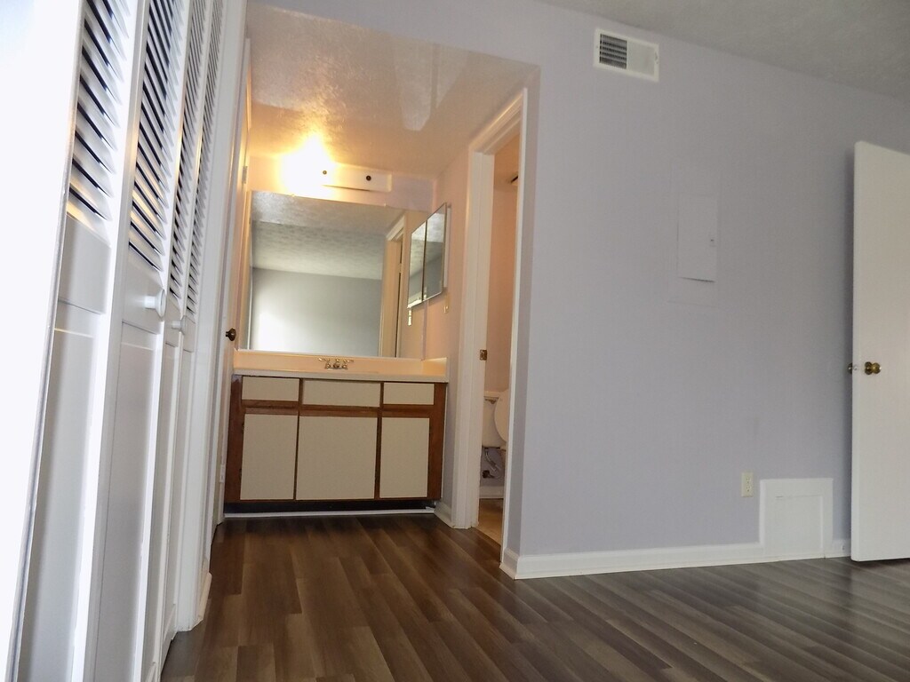 This cute unit is tucked in the corner of the gated community, Hampton Club. It offers 2 bedrooms each with their own attached bath. The 2nd floor offers a second primary bedroom or can be used as an office space. Laminate floors throughout, carpet on stairs. Available immediately. Sorry, No Pets. Apply online at