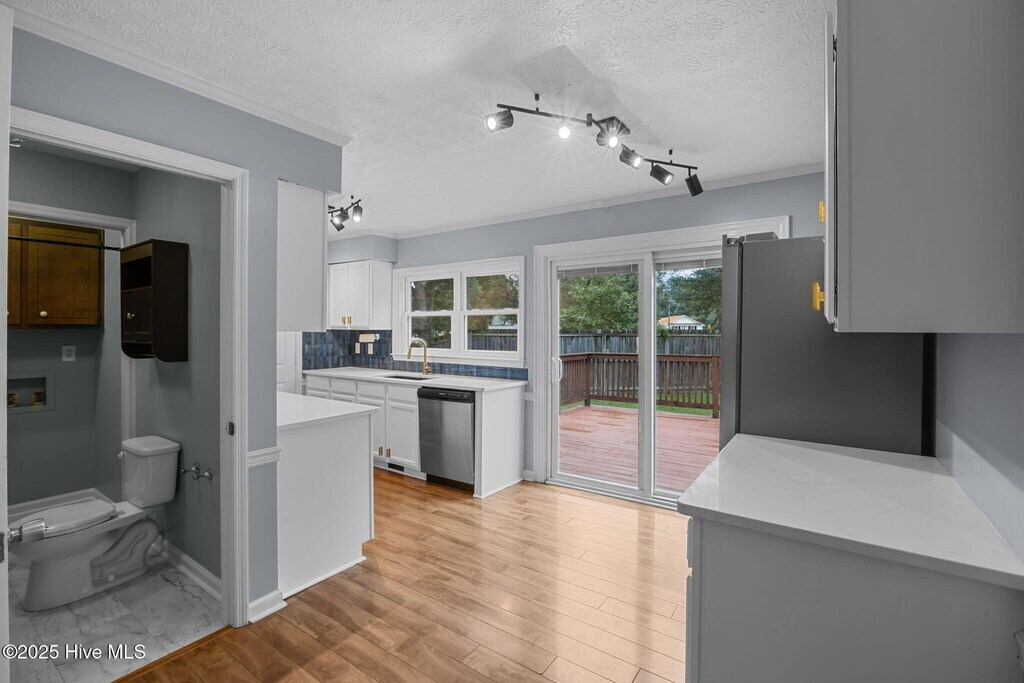Welcome home to this cozy yet spacious 3-bedroom, 2.5-bathroom house designed with comfort and convenience in mind--just minutes from MCAS Cherry Point.Downstairs offers a comfortable living room, a formal dining area, and a recently updated kitchen with fridge, stove, dishwasher, and built-in microwave. Durable LVP flooring runs throughout the main level. The half bathroom doubles as a laundry room with washer/dryer hookups, adding extra function to the space. Upstairs, all three bedrooms feature soft carpet and two full bathrooms.Outside you'll find a fenced backyard with plenty of room to play, a deck for relaxing, and a storage shed for all your extras. The one-car garage provides even more space and convenience.