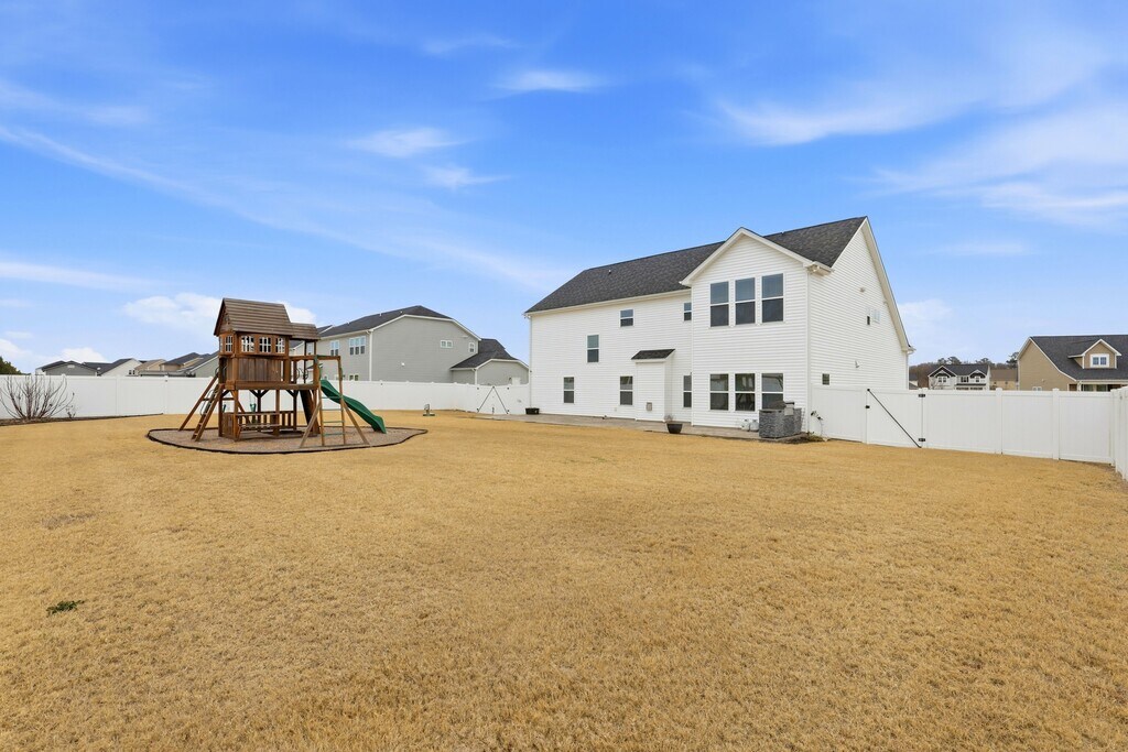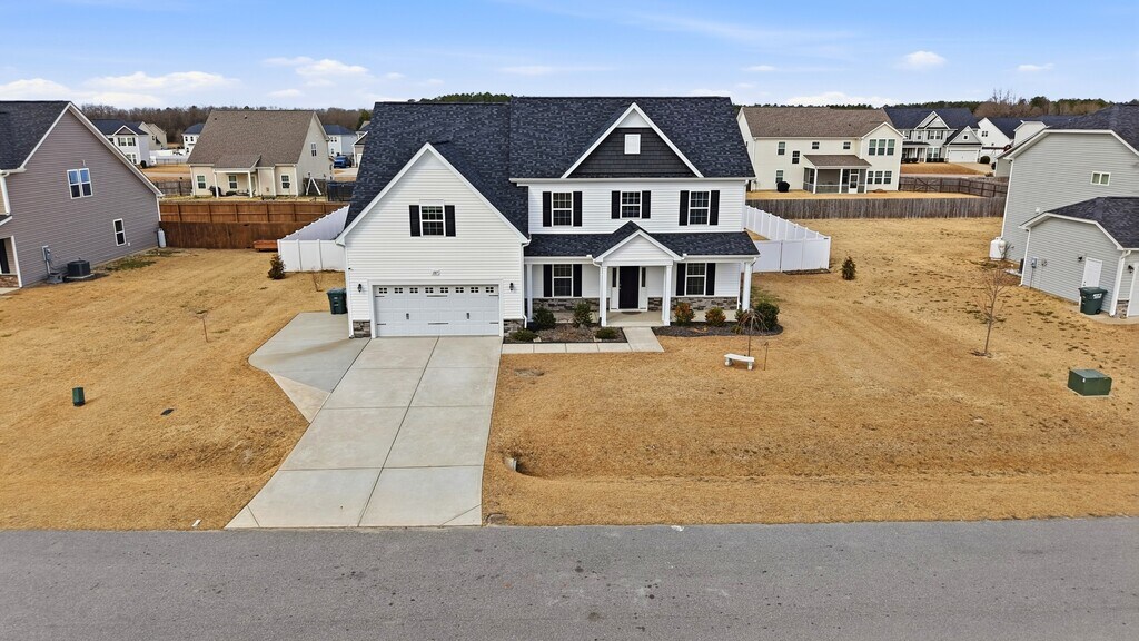 Welcome to 107 Salmon Lane. This exceptional, tastefully updated home is located in an established neighborhood featuring a community pool and a quiet double-sided cul-de-sac setting. Just under 3,500 square feet, the home offers five bedrooms and three bathrooms with a spacious, open floor plan designed for both everyday living and entertaining. The kitchen features a 10-foot island and a custom pantry, while the owner's suite wing provides privacy and includes a custom owner's closet and an attached laundry room. Step outside to enjoy a fully fenced backyard, perfect for play and gatherings. Home also features a 240V in the garage & exterior manual generator transfer switch with inlet connection. No pets!