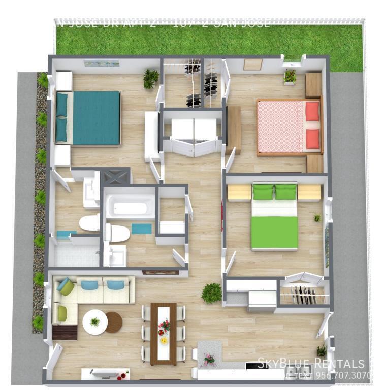 There is currently a 3 Bed 2 Bath Apartment for rent with 1,015 listed at 107 San Jose Dr. It is Available Now.