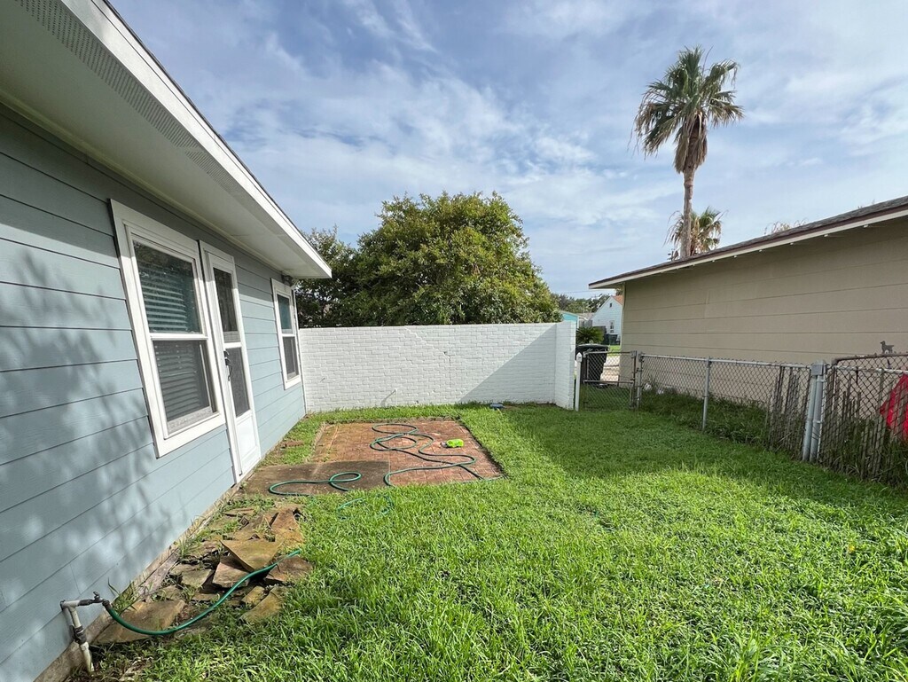 Fish Village bungalow. With fully fenced back yard. Two car garage. Three bedroom one bath. Open living room. Washer and dryer connections in the garage. Fridge and dishwasher included. Vinyl floors throughout for easy maintenance. Updated windows and blinds. Located next to Lindale park. Tennis,dog park,basketball and play ground. Walking distance to UTMB and very close to downtown Galveston. MLS# 91748188