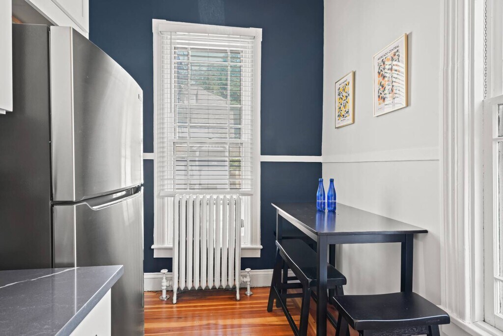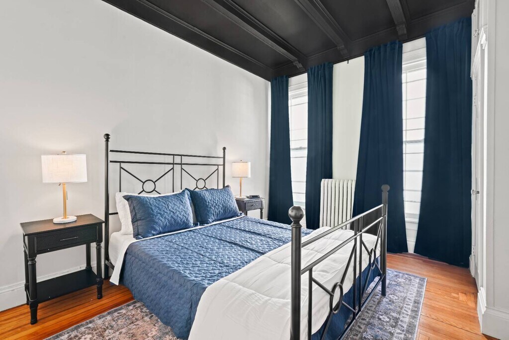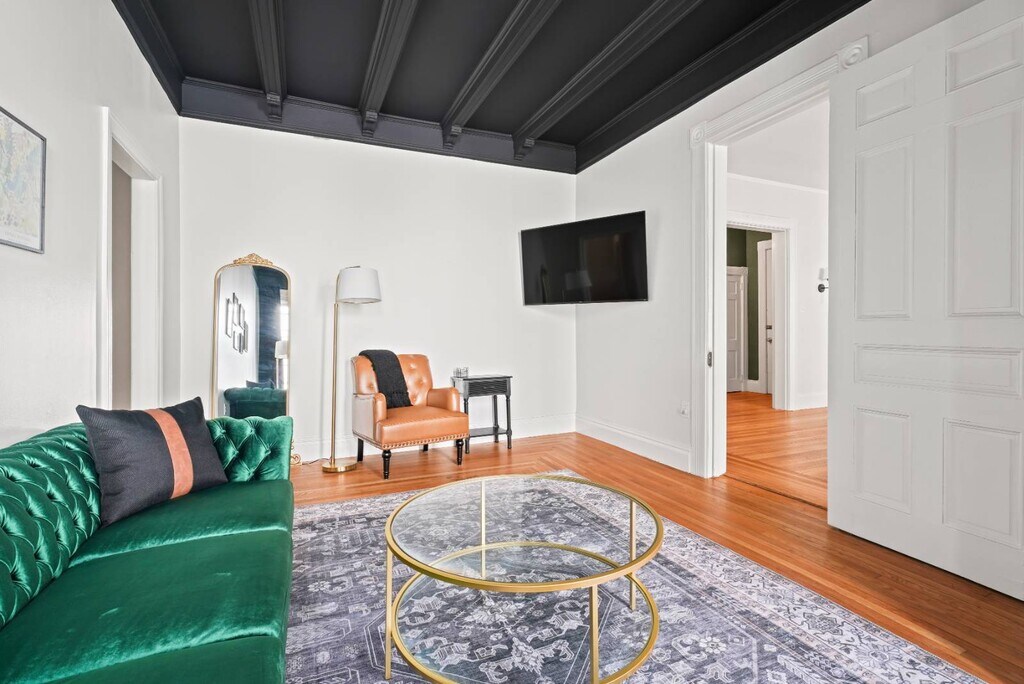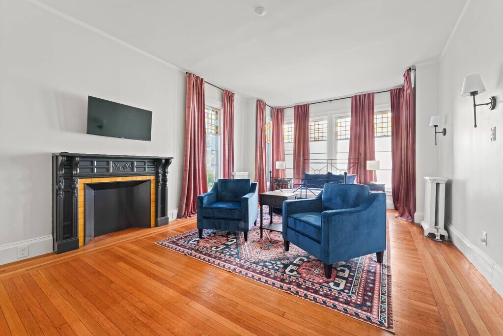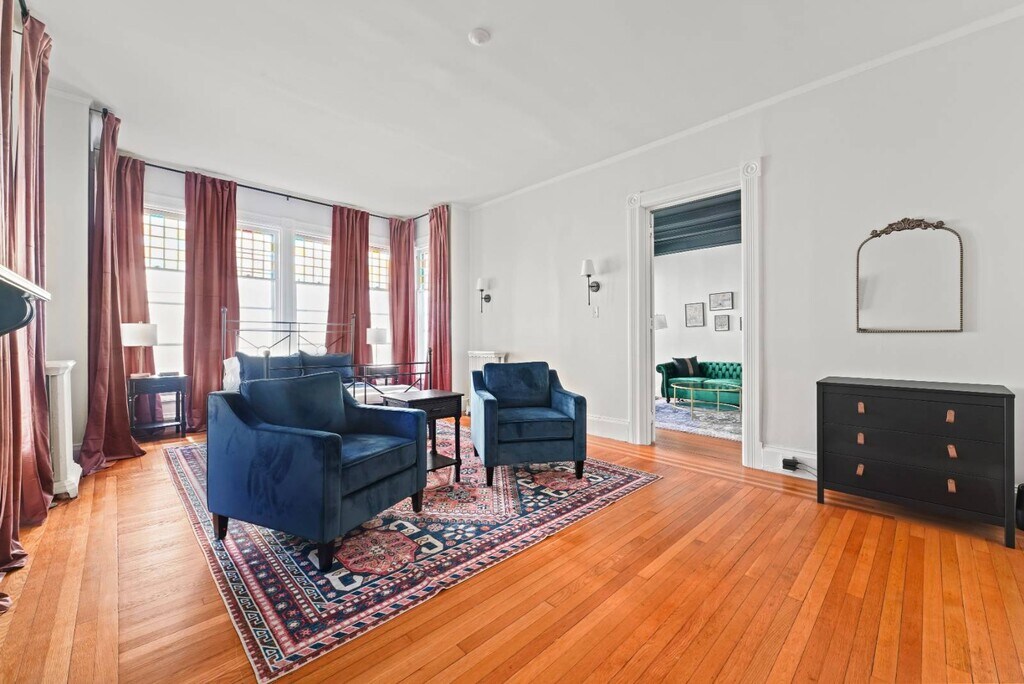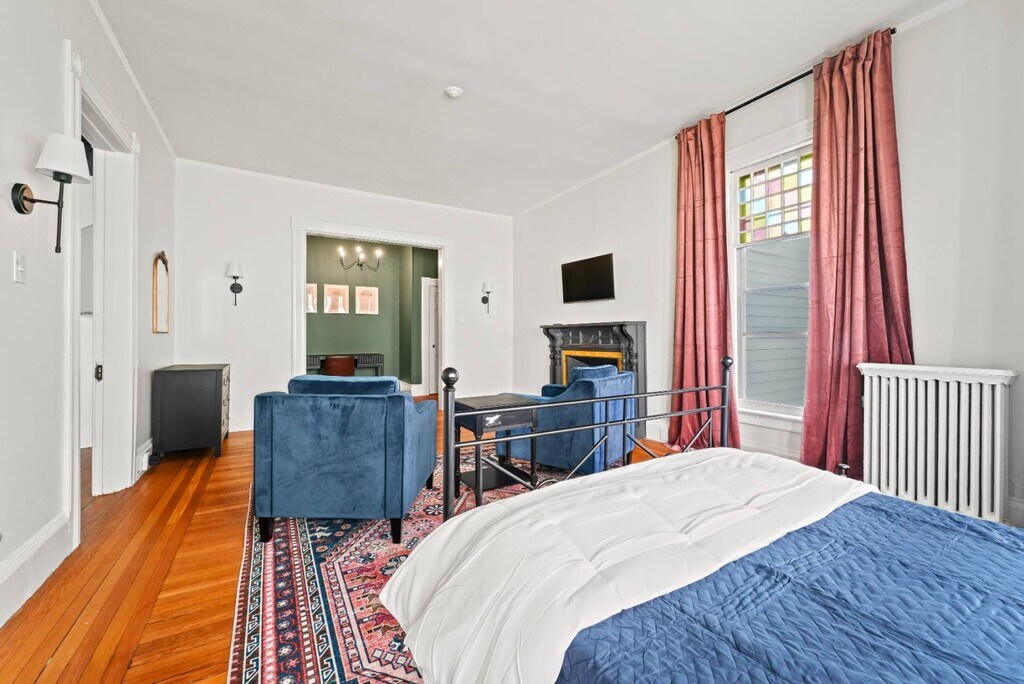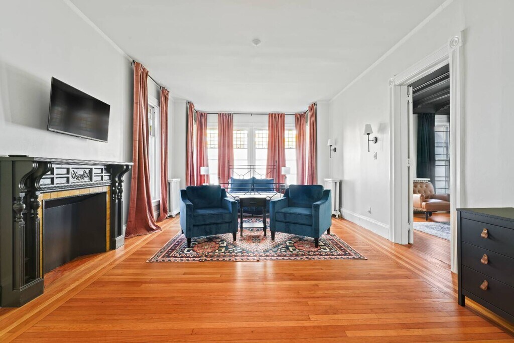 This gorgeously restored first floor 2bed/ 1bath, 1100ft² apartment is overflowing with totally renovated moody Victorian historic character and charm featuring high end finishes throughout such as decorative/ornamental fireplaces, vaulted ceilings, all new restorative style lighting, restored door hardware for historic charm and refinished hardwood floors throughout the entire residence. A convenient few steps from the parking lot will find you right at the rear building entrance to this Saratoga Stay by Green Springs. We have carefully outfitted the space with all of the accommodations you'll want or need for relaxing, cooking, dining, sleeping, bathing, web surfing, conversing or even working. Positioned in the heart of downtown, walkable to downtown or the Saratoga Race Course, this location, easily accessible to the best Saratoga has to offer, can't be beat. •Laundry -shared/on site •Fully outfitted kitchen •Towels/linens provided •Shared furnished front porch •Work from home accommodations •Coffee, groceries, movies, dining a few short blocks. •NONsmokers Strictly! •3 person Occupancy max Lease Lengths Available: 6, 9 or 12 months ANIMALS: Animal friendly - max 2 ≤50lb total animals weight limit NEIGHBORHOOD: This property is ideally positioned between a quiet neighborhood on the backside and the invigorating bustle of Saratoga from the front. Mere blocks of easy walking to either Saratoga's race course or downtown Broadway's shopping, dining, parks and nightlife. Given the downtown location there is potential for related audible noise. Complimentary earplugs available to accommodate guest preference. BEDROOMS: For sleeping there are 2 bedrooms each outfitted with a Queen bed. KITCHEN/ DINING: For meal time there is a dining table, chairs & place settings to serve 4, plentiful bakeware and cookware as well as a shared outdoor grill for a wide variety of culinary prep wants and needs. BATHROOM: For bathing there is a beautiful newly renovated full tub/shower bath stocked with beauty care basics and plentiful bath linens. LAUNDRY: Property shared coin laundry room available for use during your stay. UTILITIES: Flat $295/Month fee ONE TIIME FEES: $250 cleaning fee $95 Move In â—Lease Length Flexibility â—Unit Transfer Options ANIMALS: â—Animal friendly - max 2 â—≤50lb dog weight limit â—≤50lb total animals weight limit