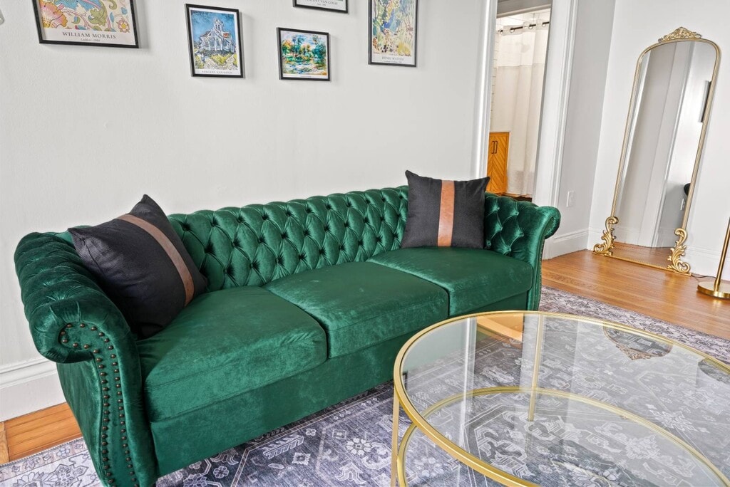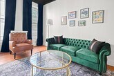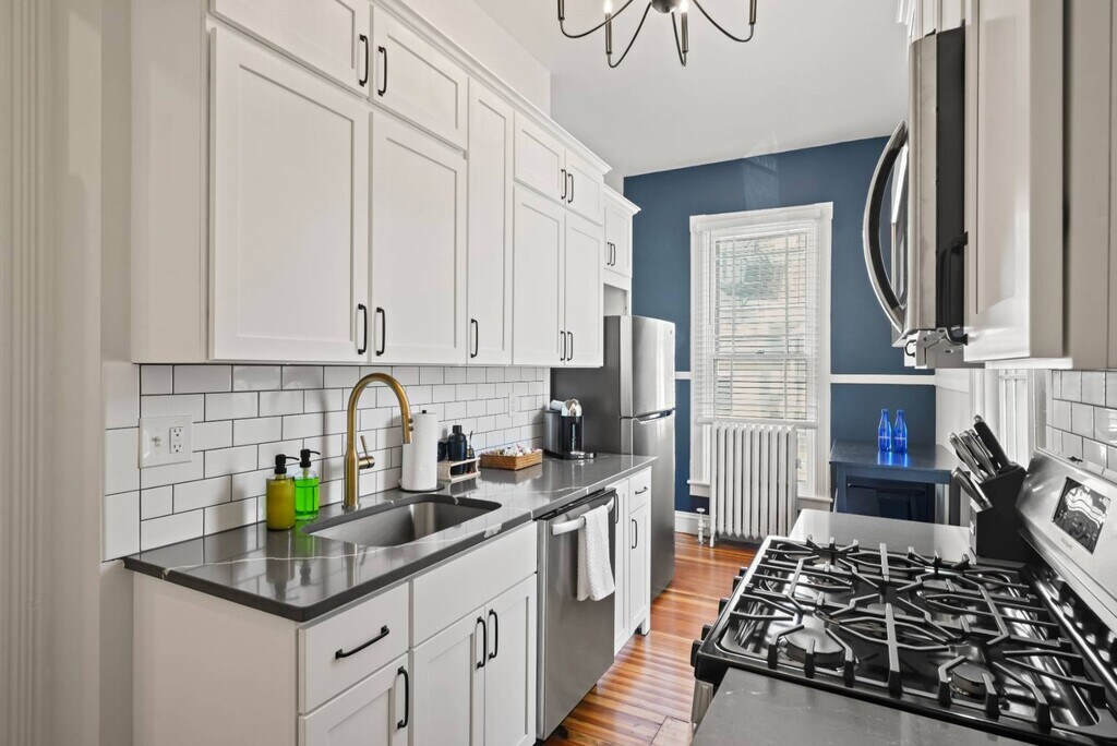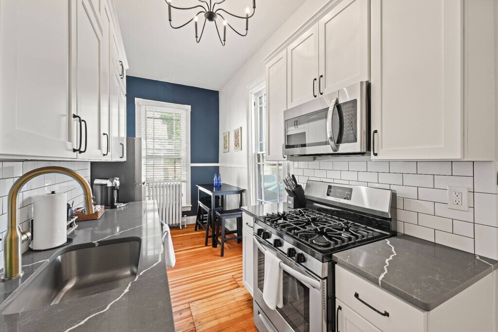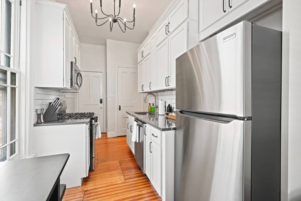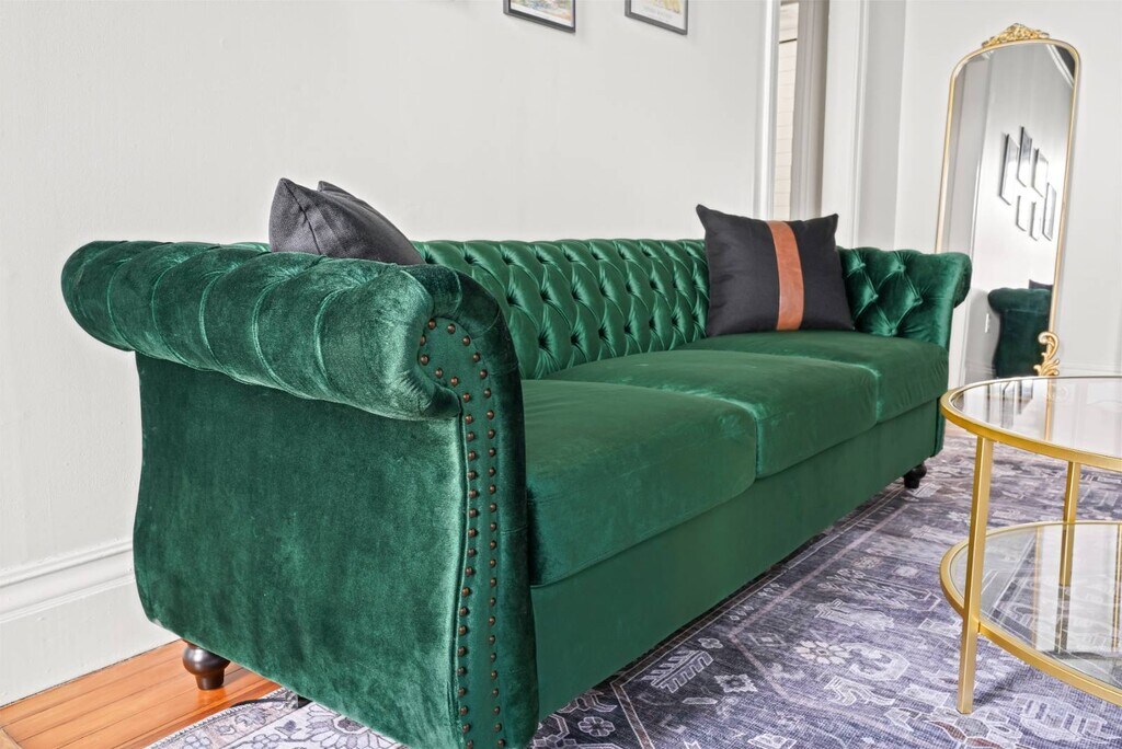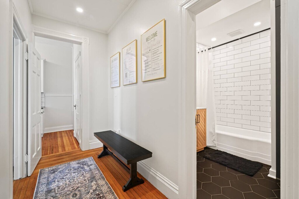 This gorgeously restored first floor 2bed/ 1bath, 1100ft² apartment is overflowing with totally renovated moody Victorian historic character and charm featuring high end finishes throughout such as decorative/ornamental fireplaces, vaulted ceilings, all new restorative style lighting, restored door hardware for historic charm and refinished hardwood floors throughout the entire residence. A convenient few steps from the parking lot will find you right at the rear building entrance to this Saratoga Stay by Green Springs. We have carefully outfitted the space with all of the accommodations you'll want or need for relaxing, cooking, dining, sleeping, bathing, web surfing, conversing or even working. Positioned in the heart of downtown, walkable to downtown or the Saratoga Race Course, this location, easily accessible to the best Saratoga has to offer, can't be beat. •Laundry -shared/on site •Fully outfitted kitchen •Towels/linens provided •Shared furnished front porch •Work from home accommodations •Coffee, groceries, movies, dining a few short blocks. •NONsmokers Strictly! •3 person Occupancy max Lease Lengths Available: 6, 9 or 12 months ANIMALS: Animal friendly - max 2 ≤50lb total animals weight limit NEIGHBORHOOD: This property is ideally positioned between a quiet neighborhood on the backside and the invigorating bustle of Saratoga from the front. Mere blocks of easy walking to either Saratoga's race course or downtown Broadway's shopping, dining, parks and nightlife. Given the downtown location there is potential for related audible noise. Complimentary earplugs available to accommodate guest preference. BEDROOMS: For sleeping there are 2 bedrooms each outfitted with a Queen bed. KITCHEN/ DINING: For meal time there is a dining table, chairs & place settings to serve 4, plentiful bakeware and cookware as well as a shared outdoor grill for a wide variety of culinary prep wants and needs. BATHROOM: For bathing there is a beautiful newly renovated full tub/shower bath stocked with beauty care basics and plentiful bath linens. LAUNDRY: Property shared coin laundry room available for use during your stay. UTILITIES: Flat $295/Month fee ONE TIIME FEES: $250 cleaning fee $95 Move In â—Lease Length Flexibility â—Unit Transfer Options ANIMALS: â—Animal friendly - max 2 â—≤50lb dog weight limit â—≤50lb total animals weight limit