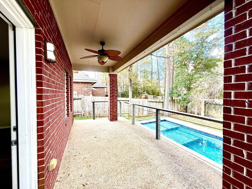 Great home to live in! 4 bedrooms,2 1.2 bathrooms,home office and huge game room upstairs. This house has beautiful views of the living room,with a lot of space outside with a large terrace and pool . This house is located in a quiet neighborhood with excellent school district as Deretchin,McCoullogh and The Woodlands High School. The house included Washer,dryer and refrigerator. Pets will be case by case. Come and visit this house. ! MLS# 54895860