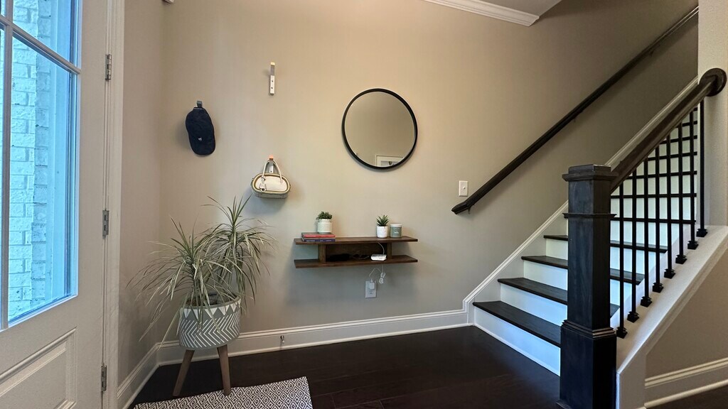 Welcome to this well-maintained 3-story end-unit townhome in a newer Roswell community. Built in 2020, the home offers a functional open-concept layout with high ceilings, large windows, and quality finishes throughout. From the kitchen, step onto one of the most private decks in the community, with seasonal views of cherry blossoms in the spring and a Japanese maple in the fall. The main level features a gourmet kitchen with quartz countertops, an oversized island, stainless steel appliances, a large walk-in pantry, and ample cabinet space. The kitchen flows into the dining and living areas for everyday comfort and easy entertaining. Upstairs, the primary suite includes a spacious walk-in closet and a bath with dual vanities and a walk-in shower. Two additional bedrooms share a full bath, and the laundry room is on the same level. The lower level provides a private bedroom with a full bath, ideal for guests or a home office. Unique features that set this home apart: hardwood flooring throughout (no carpet), an expansive 6x6 side window that fills the main living level with natural light and frames the seasonal landscape, and custom floor-to-ceiling storage shelving in the garage. As an end-unit, the property enjoys added privacy with no direct-facing neighbor and no unit on one side. Directly across from the garage are two additional community parking spaces, and between the two-car garage and full driveway you have four private parking spaces. Situated at the end of a quiet street, it offers one of the more private and desirable settings in the community, while still being minutes from GA-400, Avalon, downtown Roswell, Crabapple Market, and downtown Alpharetta for easy access to shopping, dining, parks, and entertainment. At a glance: 4 bedrooms, 3.5 bathrooms, ~2,295 sq ft (built 2020), deck off the kitchen, gourmet quartz kitchen with a walk-in pantry, lower-level guest suite, hardwoods throughout, end-unit privacy, custom garage storage, and abundant parking (garage + driveway + nearby community spaces).