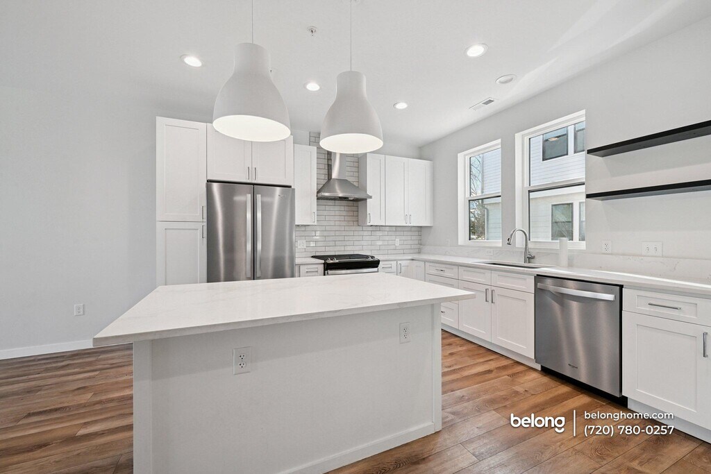 Packed with bright, inviting features including airy living areas, stylish finishes, and a private balcony, this modern townhome brings a cheerful energy to everyday living. Large windows frame neighborhood views, and the clean lines throughout give each room an upbeat, open feel. Your main floor is designed for comfortable gathering, with warm flooring guiding the flow between the living area and kitchen. Recessed lighting keeps the space feeling lively, and sliding doors open to the balcony for a quick breath of fresh air or a spot to enjoy the outdoors. The kitchen adds even more charm with its roomy island, stainless steel appliances, white cabinetry, and subway tile backsplash, all working together to create a space that feels easy to use day to day. You’ll find three restful bedrooms, including one with a bold accent wall that adds personality and depth. Natural light filters through multiple windows, and the 2.5 baths offer modern fixtures and convenient layouts that support smooth routines for households of all kinds. This location is a standout if you love variety in your lifestyle. You’re just 10 to 15 minutes from trailheads leading into the foothills for weekend hikes and only about a 10-minute drive to downtown Denver for dining, entertainment, and shopping. Everyday errands are simple thanks to nearby spots like King Soopers, Target, and the shops at Belmar, while the neighborhood itself remains quiet and tucked away, offering a sense of privacy without feeling far from anything you need. *Our homes come as-is with all essentials in working order. Want upgrades? Request it through the Belong app, and our trusted pros will take care of the rest!