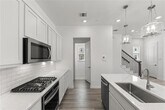 Beautiful 3-bedroom, 2.5 bath end unit condo in Lexington Estates. This open floor plan design features luxury vinyl plank flooring in the main area downstairs, ceramic tile in the bathrooms, and plush carpet in the bedrooms. The gourmet kitchen features 42-inch cabinets, a Moen faucet, quartz countertops, an electric stainless-steel oven, gas cooktop, refrigerator, and an eat in bar top island with decorative lighting above it. Kitchen is open to the downstairs living area which boasts a wall of windows to let in lots of natural light. All bedrooms up. Primary bedroom offers an ensuite bath with dual sinks, large shower, separate water closet, and an oversized walk-in closet. Property includes full-size washer and dryer. 2 car garage faces rear.