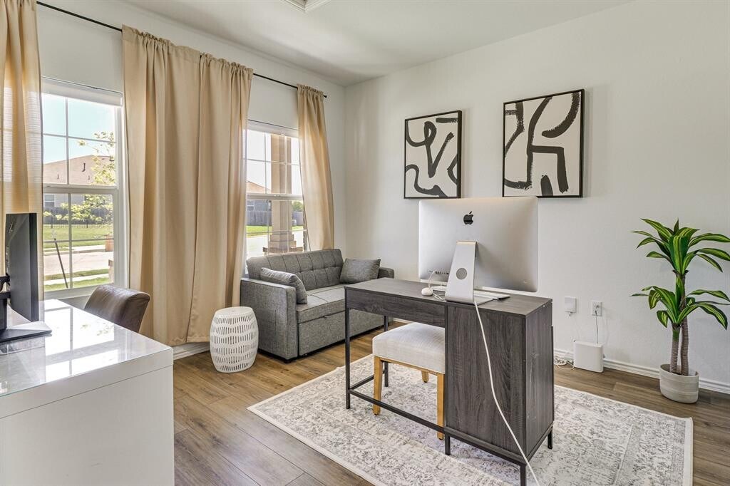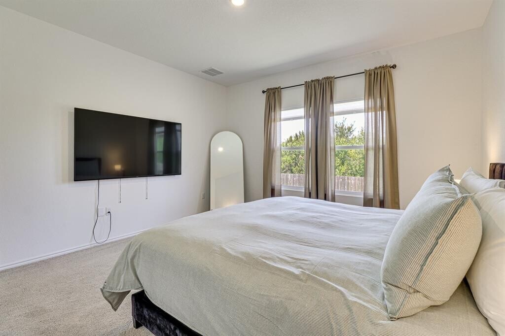 Experience elevated Austin living in this fully furnished, barely lived-in 2023 build located in the sought-after Bradshaw Crossing community. This immaculate two-story home offers 4 bedrooms, 2.5 bathrooms, and 2,467 square feet of thoughtfully designed space, backing directly to a quiet greenbelt with no rear neighbors for added privacy and tranquility. The main level features a flexible front room ideal for a home office or study, along with an open-concept living, dining, and kitchen area that flows seamlessly to a covered back patio overlooking the greenbelt—perfect for relaxing or entertaining. The first-floor owner’s suite provides comfort and convenience with a private ensuite bath. Upstairs, you’ll find three additional bedrooms, a full bath, and a spacious game room, offering plenty of room for work, play, or guests. Offered fully furnished and in excellent condition, this home is ideal for tenants seeking a turnkey rental with modern style and minimal wear. Conveniently located near major employers and destinations including Austin-Bergstrom International Airport, Tesla Gigafactory, and Downtown Austin, with easy access to transit, shopping, and dining. Everyday essentials like the H-E-B on Slaughter Lane and Southpark Meadows shopping are just minutes away, while nearby Onion Creek and McKinney Falls State Park provide easy access to outdoor recreation. Residents also enjoy Bradshaw Crossing’s amenities, including a community pool and park. Combining modern design, a peaceful greenbelt setting, and city convenience, this like-new furnished home offers an exceptional leasing opportunity in Austin.