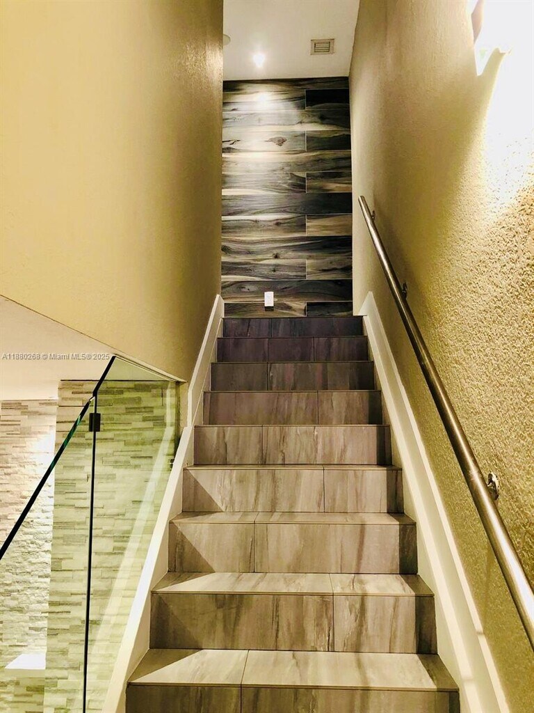 Modern Luxury Townhome for rent in Hialeah Gardens. You won't find anything like this in the area. Tastefully remodeled with nothing but high end appliances and fixtures like zebra curtains, quartz countertop and wood cabinets, porcelain 24x24 floors, glass staircase, dimmable recess lighting, outdoor kitchen and sink, tiled backyard with aluminum roofing and fans, tv is ready to be mounted on walls with hidden HDMI cables, decorative accent walls throughout the unit, blackout blinds in rooms, glass shower doors, custom closets, custom cabinetry in bathrooms, high efficiency a/c unit with smart control, high efficiency stainless steel washer and dryer, dual climate control wine cooler and more.
