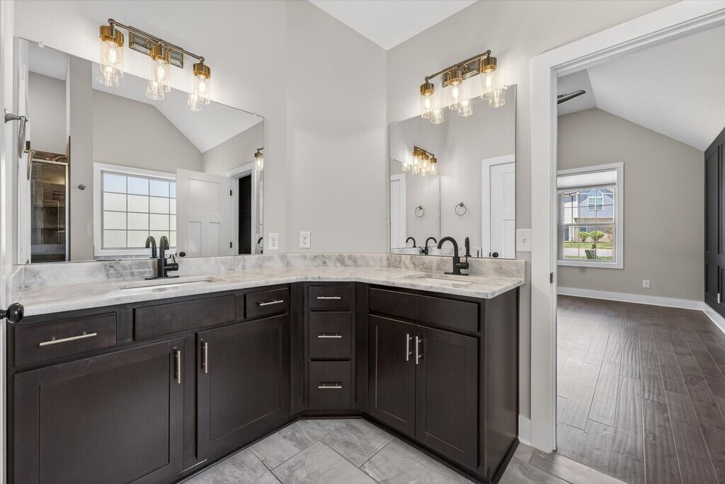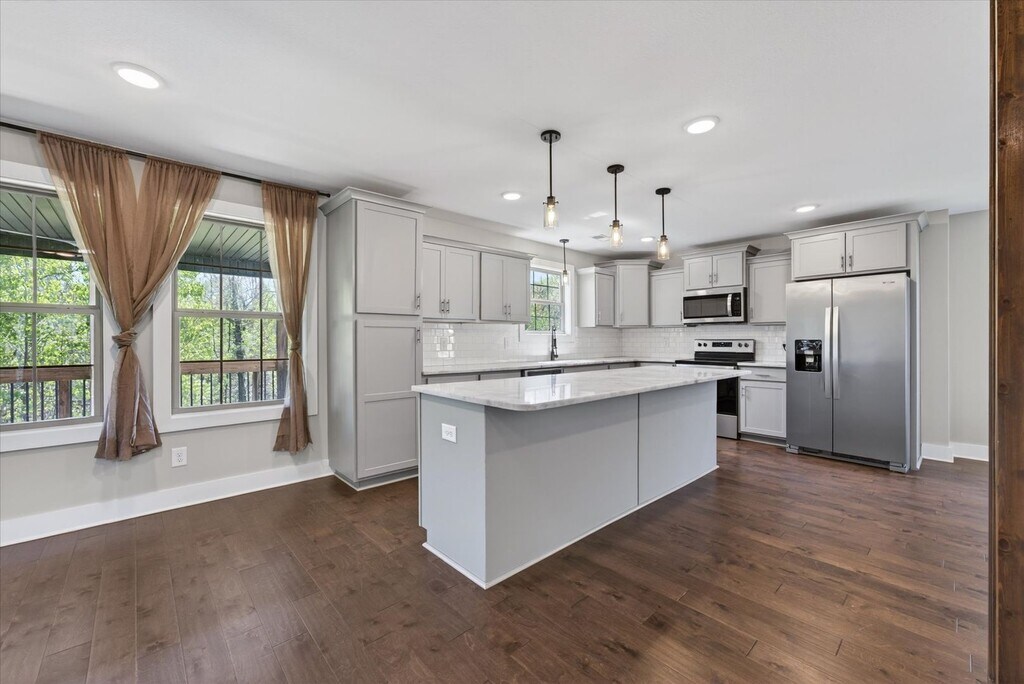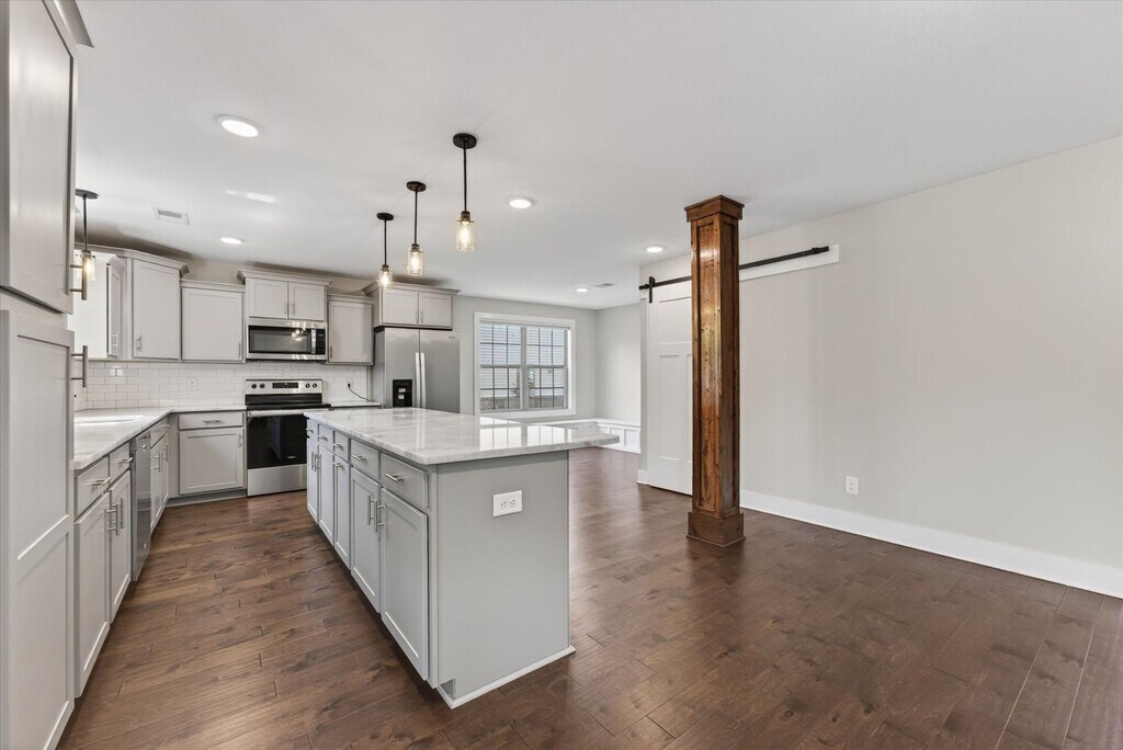 Like new three bedroom, two and a half bath home conveniently located just minutes from restaurants, shopping, I-24, and more! This home features beautiful engineered hardwood floors flowing throughout the entire first floor, along with a large living room complete with a stunning floor to ceiling shiplap fireplace and tons of natural light from the windows! The spacious eat in kitchen offers granite countertops, stainless steel appliances, a large island, and a generous dining area with built-in bench seating! The primary suite also features engineered hardwood floors and includes a full bath with double vanity, soaking tub, tiled shower, and a walk in closet. Upstairs, you’ll find a versatile loft area, along with two generously sized guest rooms. Enjoy the great outdoor space with a covered deck and fenced backyard! Pet Rent Scale - Dogs: $30.00 per month - Cats: $35.00 per month - Restricted Breeds: $50.00 per month