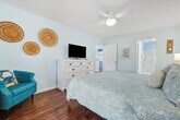 Feel at home in this 3-bedroom apartment at True Blue on 10th Hole, located on the second floor at 1081 Blue Stem Drive, Unit 35-D. This spacious apartment features a fully equipped kitchen with modern appliances including a dishwasher, stove oven, toaster oven, Keurig/coffee maker, microwave, and refrigerator. The living area offers comfortable seating and a large flat-screen TV. Step outside onto the screened porch to relax on comfortable chairs and enjoy the breeze from the ceiling fan. The apartment includes pre-made beds and a luxury linen package with sheets, washcloths, bathmats, hand towels, and bath towels. This is a pet-friendly property with a pet fee of $150. Guests can rent beach gear with a credit of $18 a day for reservations of 3 to 21 nights, which can be used for bicycles, beach chairs and umbrellas, and beach carts. Grocery delivery, in-home chef services, and on-site massages, manicures, pedicures, and babysitting can also be arranged. Enjoy easy access to beaches, attractions, golf courses, swimming, and restaurants. The True Blue Clubhouse offers breakfast, lunch, and happy hour. Pawleys Island is a private, family-oriented beach community on the South Carolina coast, offering miles of beach and tidal creeks, a nature preserve with walking trails and bike paths, and a delightful year-round climate. Activities include beach trips, swimming, boating, on and off-shore fishing, championship golf, tennis, surf fishing, paddle boarding, museums, plantation tours, wildlife reserves, sculpture and botanical gardens, shopping, historic tours, and culinary adventures. The apartment is an hour from Charleston and 45 minutes from Myrtle Beach. Guests under the age of 25 must be accompanied by a responsible parent or guardian to book this apartment. Smoking is not allowed on the premises. Enhanced cleaning, disinfection, and sanitization are provided by professionally trained and equipped housekeeper employees, using CDC housekeeping protocols, approved disinfectants, and personal protection equipment. Linens and terry are cleaned and sanitized at a commercial laundry. [SI]