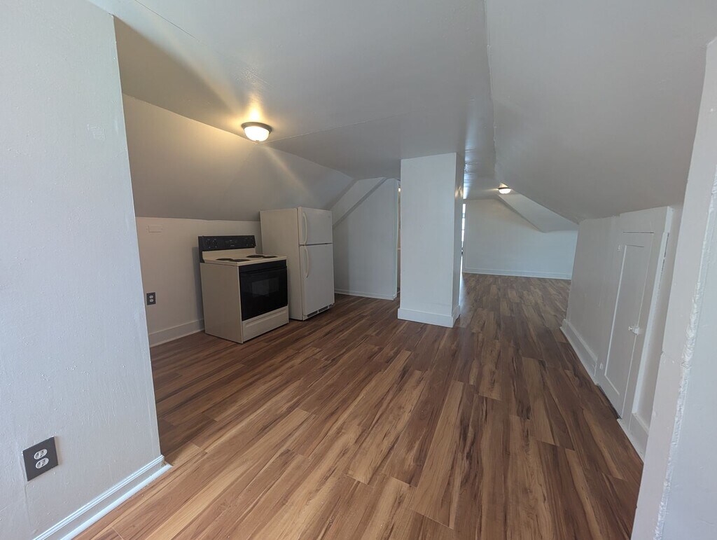 Welcome to your new home in Cleveland, OH! This updated 1-bedroom, 1-bathroom apartment is located on the 3rd floor, offering a unique loft-style living experience. The apartment boasts new flooring and fresh paint, giving it a modern and clean feel. The living room is spacious and features a vaulted ceiling, adding an extra touch of elegance and openness to the space. The large kitchen is perfect for those who love to cook and entertain. Experience the best of Cleveland living in this stylish and updated apartment. This home comes equipped with a Fridge and a Stove. Tenant responsible for gas and electric. Water/Sewer included. Street Parking available. Pet friendly, cats and dogs under 25lbs. set up fee applicable for pet owners. A $50 nonrefundable application fee per adult applicant, which includes a credit and background check. 3rd Floor Apartment Fresh Paint Large Kitchen Loft New Flooring Updated Apartment
