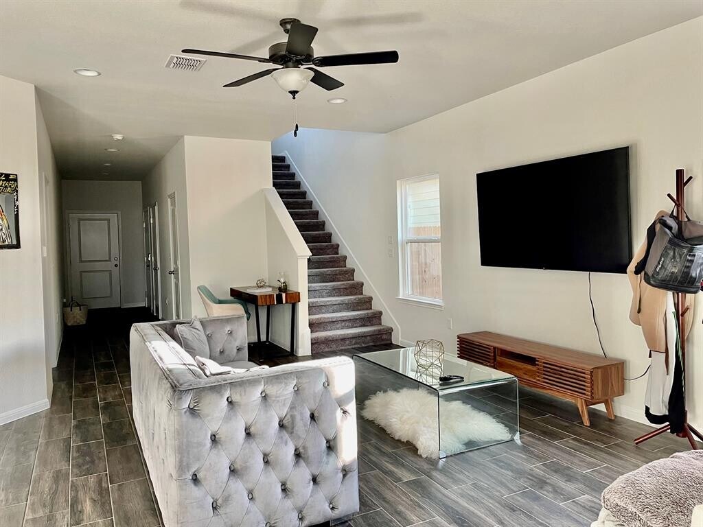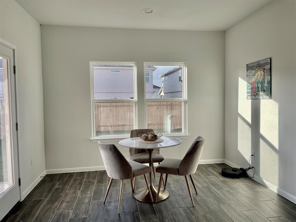 Lori Anne GotoWelcome to this beautiful 4-bedroom, 2.5-bath home in the sought-after Vistas of Austin community! Built in 2021, this two-story home offers a spacious and functional layout with the primary suite conveniently located on the main floor. Enjoy high ceilings, a bright open living area, and a modern kitchen featuring quartz countertops, stainless steel appliances, and plenty of cabinet space.Upstairs, you ll find a versatile gameroom and three additional bedrooms, perfect for family, guests, or a home office. The home features a mix of tile and carpet flooring throughout, as well as added gutters for convenience.Step outside to a fully fenced backyard with a covered patio ideal for relaxing or entertaining. The community offers great amenities including a pool and playground. Conveniently located near shopping, dining, and major roadways, this move-in ready home is a fantastic opportunity to enjoy comfort and style close to Downtown and the Airport!