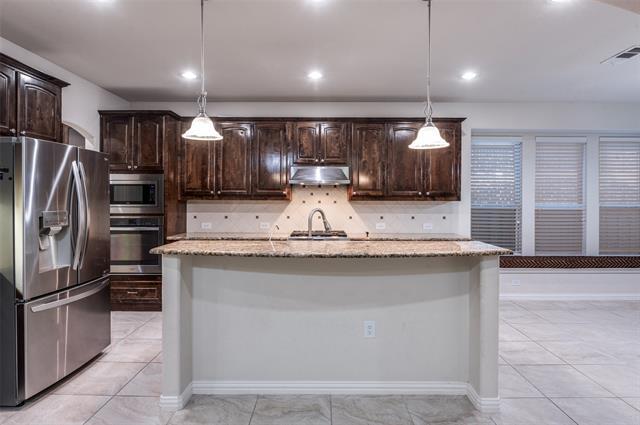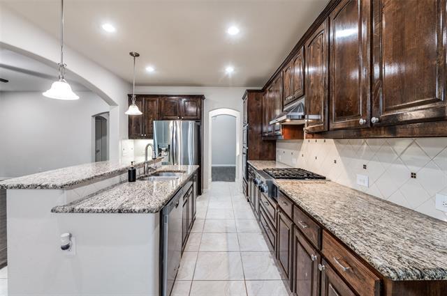 Beautiful north facing 5 bedroom, 3 bath home for lease in The Heights at Westridge, zoned to highly rated Frisco ISD. This spacious 2 story home offers over 3,000 square feet with a flexible layout featuring the primary suite, a second, and third bedroom downstairs, plus a full bath for added convenience. Enjoy multiple living areas including a first floor media room, upstairs game room, and 2 dining spaces. The open kitchen includes granite countertops, an island, gas cooktop, walk in pantry, microwave, dishwasher, and disposal. Features include decorative lighting, stone fireplace, covered patio, fenced yard, and 2 car garage. No pets. Tenant pays all utilities and maintain lawn care. Water Softener and Solar Energy included for extra energy savings and value. Includes Washer, Dryer, Refrigerator