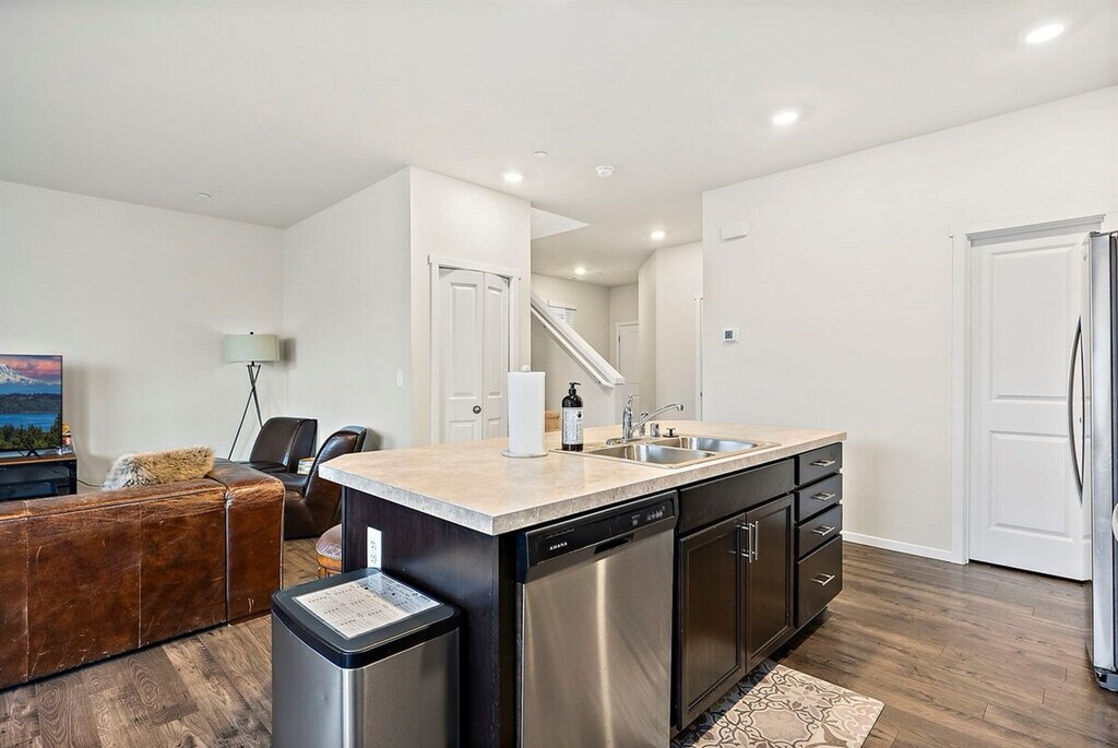 Feel at home in this thoughtfully designed home, perfect for a weekend getaway, extended work trip, or a longer family visit. This stylish and spacious retreat, built in 2022, is located in a quiet residential neighborhood in the South Sound, offering breathtaking views of Mt. Rainier. All bedrooms are privately located upstairs, providing a restful separation between living and sleeping spaces, and stairs are required to access them. Welcome to your stylish and spacious retreat, ideal for families, friend groups, and traveling professionals seeking comfort and space. The home features a King Master Suite with an ensuite bathroom, two Queen Bedrooms, and a Twin Bedroom. The bonus loft lounge offers a dedicated desk workspace, perfect for remote work. The bright, open main floor includes a gourmet kitchen with an oversized island and stainless steel appliances, and an open-concept living and dining space with cozy seating. Fast, reliable WiFi is available throughout the home, and smartlock entry ensures smooth, contact-free check-in. A 2-car garage is available for guest use. This peaceful, family-friendly neighborhood offers stunning natural beauty and a convenient location. Enjoy views of Mt. Rainier just steps outside your door, and find yourself minutes from grocery stores, restaurants, and shopping. With easy access to Tacoma, Puyallup, Point Defiance Park, Mt. Rainier National Park, and Seattle, it's ideal for day trips and adventures. No pets are allowed in this home. The property is closely monitored by exterior security cameras, and absolutely no parties or events are permitted. Noise should be kept to a minimum outside the house from 10pm to 8am to respect the neighbors. No shoes are allowed upstairs on the carpet, and no smoking is permitted anywhere on the property, including e-cigarettes and vaping. Extra cleaning fees of $50 may be applied to remove odor. The bonus loft lounge includes a dedicated desk workspace, ideal for remote work, reading, or quiet time away from the group. Fast, reliable WiFi throughout the home makes it perfect for Zoom calls, streaming, or online learning. [SI]