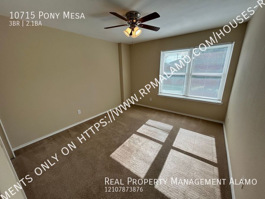 A beautiful two-story home nestled in the heart of San Antonio, TX. Designed with both style and functionality in mind, this impressive residence offers 3 spacious bedrooms and 2.5 bathrooms, providing the perfect balance of comfort and modern living. Step inside to discover thoughtfully curated updates throughout, including central air and heat, ceiling fans, and convenient washer/dryer connections. The open and inviting layout creates a seamless flow for everyday living and entertaining. Upstairs, a versatile loft space offers the ideal setting for a home office, media room, or play area. The primary suite serves as a private retreat, complete with a generous walk-in closet and a beautifully updated en-suite bathroom featuring a double vanity. The kitchen is sure to impress with sleek stainless steel appliances, including a refrigerator, stove/oven, built-in microwave, and dishwasher. Additional highlights include a two-car garage, a water softener, and ample storage throughout. Step outside to enjoy the covered patio and fenced backyard. Residents also have access to wonderful community amenities, including a pool and park, adding even more to love about this exceptional home. For more information or to schedule a showing, please email us at . We look forward to helping you make this home yours! *Pardon our dust! This home is currently in make-ready after its recent move-out* Apply here: RPM Alamo is proud to offer deposit-free living to qualified renters through Obligo! We understand that moving costs can add up, so we want to extend financial flexibility to our residents. When you move in with us, you can skip paying a security deposit and keep the cash for activities you care about. Learn more about the benefits of deposit-free living. More details upon application process. ASK HOW TO QUALIFY All Real Property Management Alamo residents are enrolled in the Resident Benefits Package of their choice Tier 1 $55 or Tier 2 $70 monthly which includes HVAC air filter delivery (for applicable properties), credit building to help boost your credit score with timely rent payments, $1M Identity Protection, utility concierge service making utility connection a breeze during your move-in, our best-in-class resident rewards program, and much more! More details upon application. ***The information contained in this advertisement is subject to change. The terms of any lease, should you execute a lease with RPM, are found solely in the Lease Agreement itself, along with any applicable addenda. Situations that may affect change include, but are not limited to an applicant's credit rating which may affect the required security deposit amount, and new information provided to us regarding a unit that we did not know at the time we placed this advertisement.** $350 Pet Fee Non Refundable $50 Pet Rent 2 Car Garage 2.5 Bathroom Built In Microwave Central Air/Heat Community Park Community Pool Covered Patio Double Vanity Fenced Backyard Full Carpet Upstairs Three Bedroom Two Story Updated Updated Bathroom Upstairs Loft Washer/Dryer Connections Water Softener