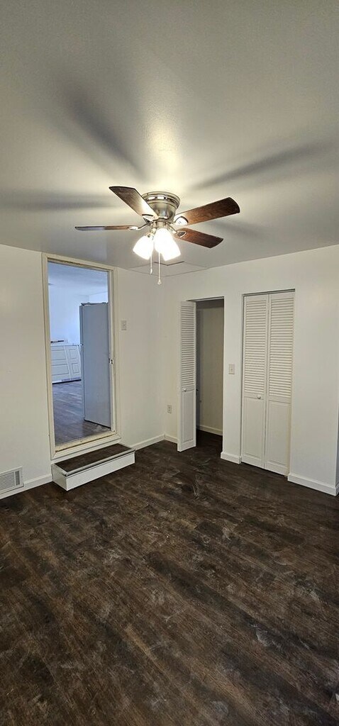 This recently renovated 4 bedroom home offers space for all. Open, bright living room, into kitchen with eat in area. Fridge and electric stove provided. Spacious primary bedroom with onsuite and laundry hookups; also provides access to backyard and entranace to basement. 3 bedrooms on the opposite side of the house share 2nd hallway bathroom.
