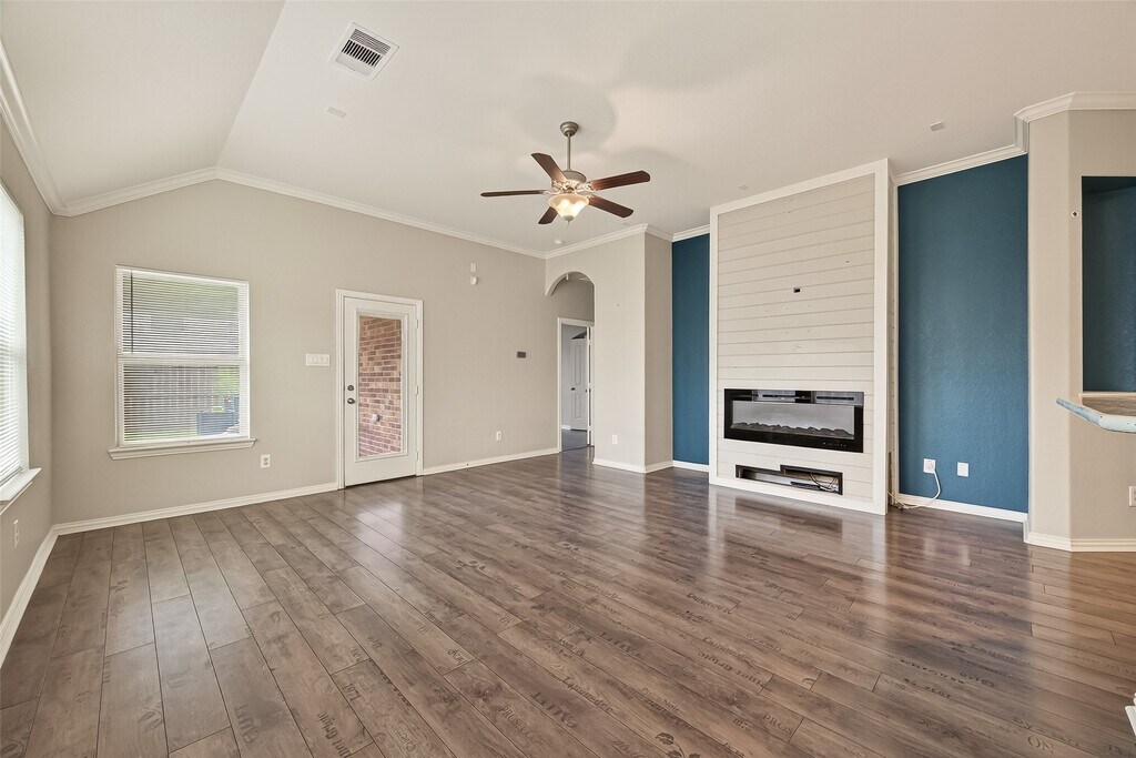 Move-in ready! This charming 3-bed,2-bath home offers stunning curb appeal with four-side brick,a custom wood front door,columns,and beautiful landscaping. A dedicated home office/study adds versatile workspace. Inside,enjoy an open-concept layout with arched doorways,crown molding,and a cozy fireplace. The kitchen features granite countertops,a center island,breakfast bar,stainless steel appliances,and a stylish backsplash. The primary suite includes double sinks,a garden tub,glass shower,and a spacious walk-in closet. Secondary bedrooms share a roomy Jack-and-Jill bathroom. Relax on the covered patio with ceiling fan. Conveniently located near major roads,shopping,dining,and local amenities. Move-in ready—schedule your showing today! MLS# 60575573