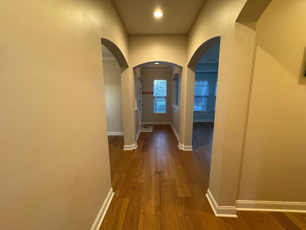 Beautiful 3-bedroom, 2.5-bathroom home located at Stonecreek Ranch. This property boasts a formal living room and a separate family room, perfect for entertaining or relaxing. The formal dining room, adorned with arched doorways and crown molding, adds a touch of elegance to your meals. The kitchen, which opens to a breakfast room and family room, is perfect for morning gatherings. The home features manufactured hardwood throughout the first floor and on the stairs, adding a touch of sophistication. The spacious secondary bedrooms provide ample space for everyone. The oversized closet is a dream come true for those who need extra storage. The double front porch is perfect for enjoying the outdoors. The home also includes a two-car, rear-load detached garage. The community amenities are sure to impress, with a playground, clubhouse, and pool. The recreation area is perfect for outdoor activities. The home is in proximity to I-485, offering convenient access to shopping and dining. Plus, it's located in a district with great, highly desired schools. This home is a perfect blend of comfort and convenience. No Smoking.