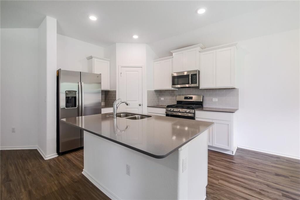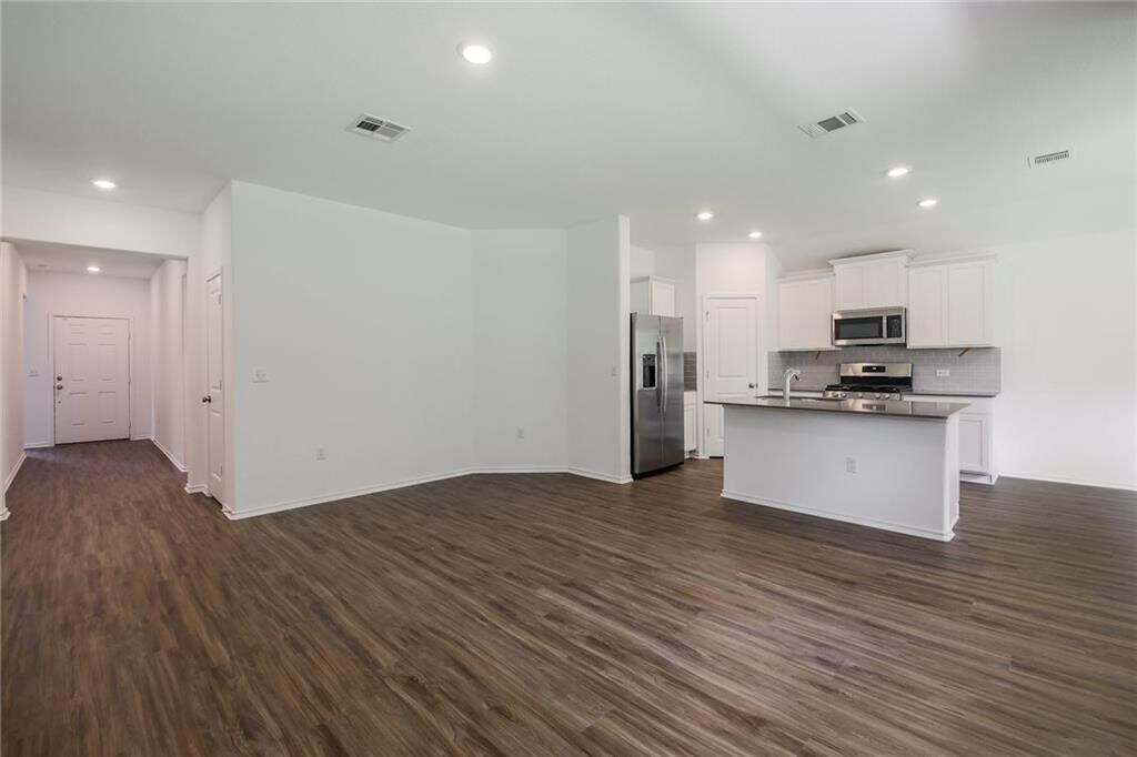 One-story Gorgeous premium home featuring 4 bedrooms,2 bathrooms, and is an excellent location. Open floor plan with lots of natural light. Everything is included**Fridge, washer, dryer. Close to South Park Meadows, ABIA, Entertainment, and more. The vinyl floor throughout the home and carpet in bedrooms, quartz countertops, a spacious quartz island in the kitchen, an automatic sprinkler system, and Garage door openers. HOA amenities include a swimming pool, kids' playground, and Ready move-in. On a cul de sac and backs up to a greenbelt, very private backyard. Very easy access to Downtown Austin.