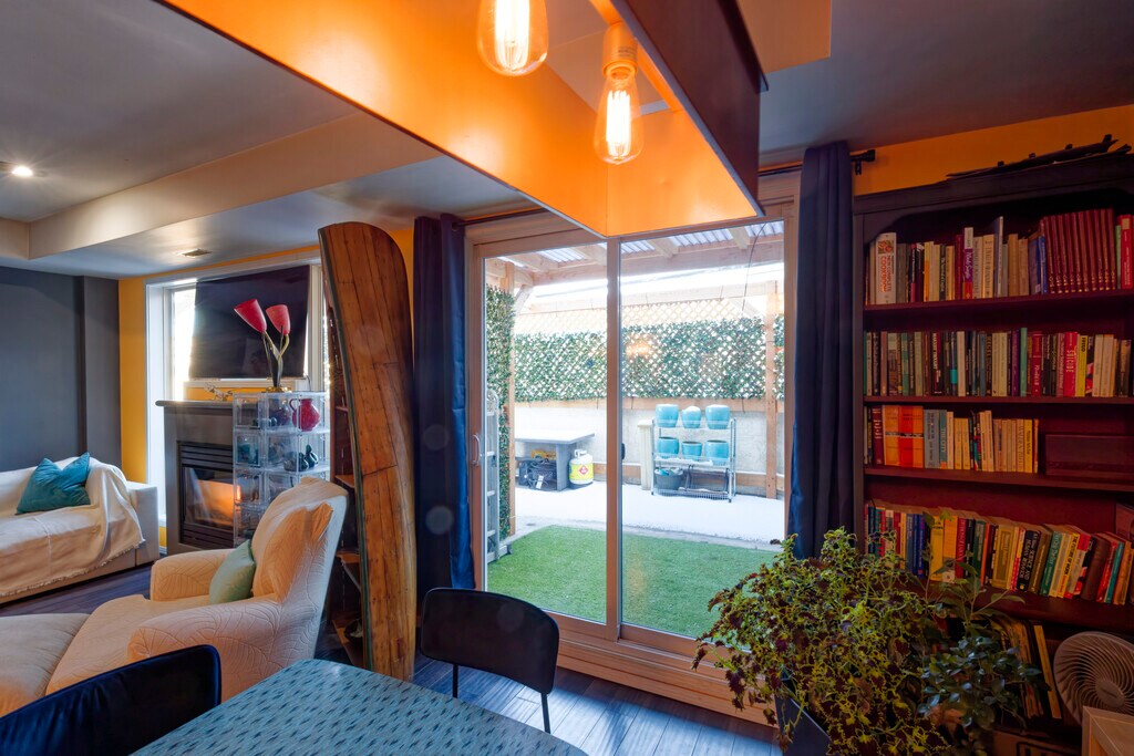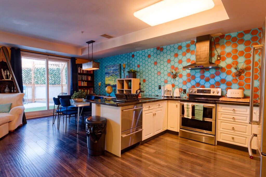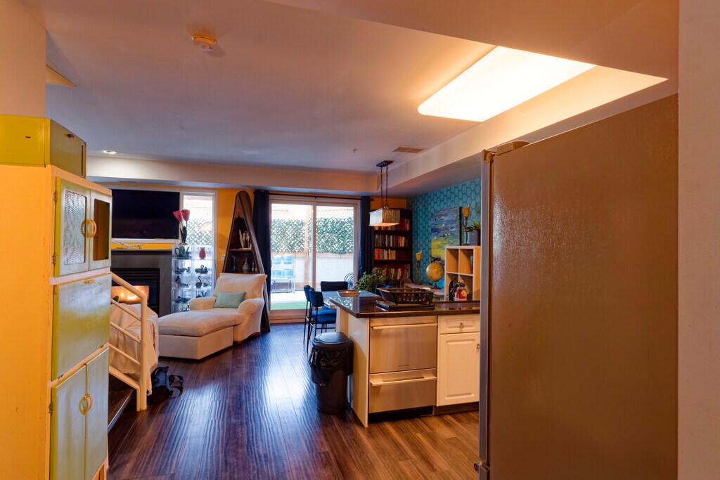 Whyte Ave Townhouse Step out of the fray and into home. This 2 bedroom 2 full bathrooms with heated secure parking space, town house is tucked away in the courtyard of Edmonton's iconic The Garneau at the heart of Whyte Ave. The townhouse overlooks 'The Murals' between Whyte and 83rd, has a large newly built Euro style private entertainment courtyard, with bbq and a generous front patio, private intercom entrance, keypad front door and very tall ceilings. The bedrooms are large and spacious with new King and Queen beds, ceiling fans upstairs and fireplace downstairs. The master suite bathroom, outfitted for two, has tub, big shower and basins for two. The kitchen, updated in the summer has a two-drawer Fischer Pakel dishwasher, new rangehood and stunning mural by local artist 'August'. The in-suite laundry has new stacked washer and dryer by Meil. Mid-century accents appear throughout lighting fixtures and furniture, with new couch and dining suites. All utilities are in, including Wifi and popular streaming servics. The townhouse is fully equipped to simply show up with your bag, flick on the big screen and breathe a sigh of relief that you're home. Walk to the U of Alberta, U of A hospital, Old Strathcona entertainment district. Overflow parking on 107st south of 82nd Ave. Great for 1, 2, 3 or 4 professional/senior student residents, price adjusted for more than 2. Lease to end of April 2026, month to month from there, first and last month's rent up front and standard lease terms apply.