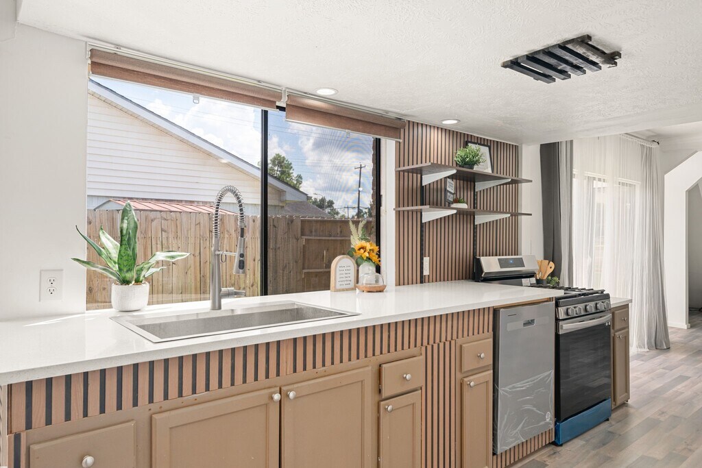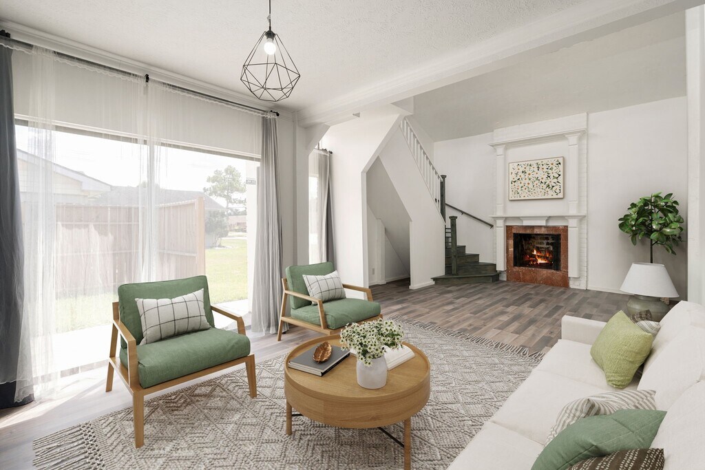 Beautiful 1.5-story home featuring 3 beds,2 baths and an upstairs loft. The brick exterior with charming chimney and inviting front yard create curb appeal. Inside,the open living area offers soaring ceilings,a cozy fireplace,vinyl flooring,& large windows filling the space with natural light. The updated kitchen includes granite countertops,stainless steel appliances,subway tile backsplash,and abundant cabinetry,opening to a breakfast nook with backyard views. Private primary suite features a sleek bath w walk-in shower,vessel sink,& modern vanity. Two secondary beds provide flexibility for guests or office use,while the loft upstairs is perfect for a game room or study. Step outside to a fenced backyard w patio. Community amenities include a park,playground,sports court,and tennis court with low HOA fees. Excellent schools. Convenient access to Beltway 8 and I-45 with shopping,dining,and entertainment nearby. MLS# 20475880