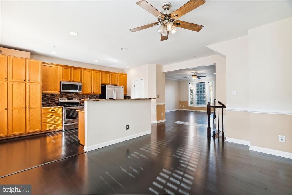 Beautifully styled 3-stry townhome offers a garage, oversized deck & patio, bright & airy floor plan with spacious living & dining rooms; plush carpeting, built-in bookcases a gas fireplace in the LL walk-out family room; eat-in kitchen w/ granite, island/bbar & hardwoods; and master retreat w/ vaulted ceilings, walk-in & master bath w/ soaking tub and separate shower.