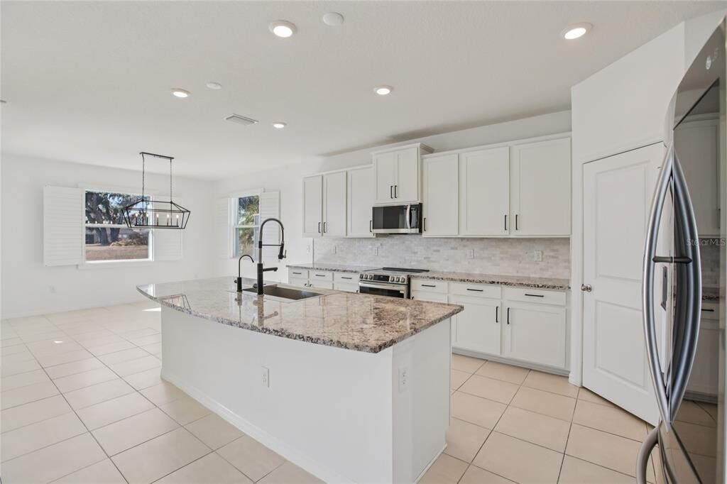 Discover Your Dream Home in Mirada! Upgraded 4-bedroom,3-bath,3-car garage Hawthorne model by DR Horton located in the highly desirable Mirada community. Built in 2020,this stunning residence boasts 2,537 sq ft of modern living space,featuring luxury vinyl plank flooring throughout (no carpet),and a spacious open-concept design that seamlessly combines comfort and style. The gourmet kitchen impresses with LG luxury appliances,a marble backsplash,and an oversized upgraded sink,perfect for culinary enthusiasts. The family room and dining area create an inviting space for gatherings,while the enormous master bedroom offers a peaceful retreat. Step outside to the oversized extended patio,where you'll find a fully equipped outdoor kitchen,a fire pit,and motorized shade—ideal for entertaining friends and family while overlooking a tranquil pond with a fountain. The backyard is designed for relaxation and outdoor fun,with features like gutters,an epoxy floor in the garage,fresh paint,and upgraded blinds for added privacy and style. Additional highlights include a laundry room with extra storage,utility sink,and included washer and dryer,along with upgraded fans and a ready alarm system for peace of mind. Located in the family-friendly Mirada community,residents enjoy resort-style amenities,walking and biking trails,dog parks,golf-cart-friendly streets,and lagoon-front recreation at the nation’s largest man-made lagoon. Situated in Pasco County,this prime location offers easy access to major highways like I-75 and State Road 54,making commutes to Tampa and Orlando a breeze. The community is within close proximity to top-rated schools,shopping centers,parks,healthcare facilities,and outdoor recreation options. Mirada is renowned for its safe,vibrant neighborhood atmosphere,active community events,and ongoing development,making it an ideal place for families,professionals,and retirees alike. Don’t miss this incredible opportunity—schedule your private showing today and step into the next chapter of your life in Mirada! MLS# TB8492974