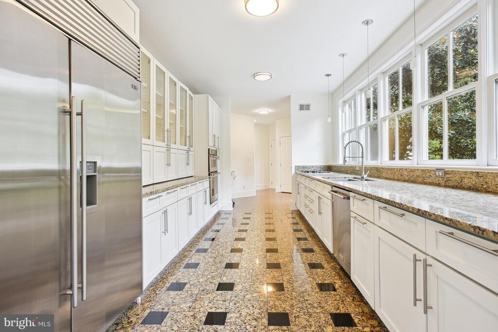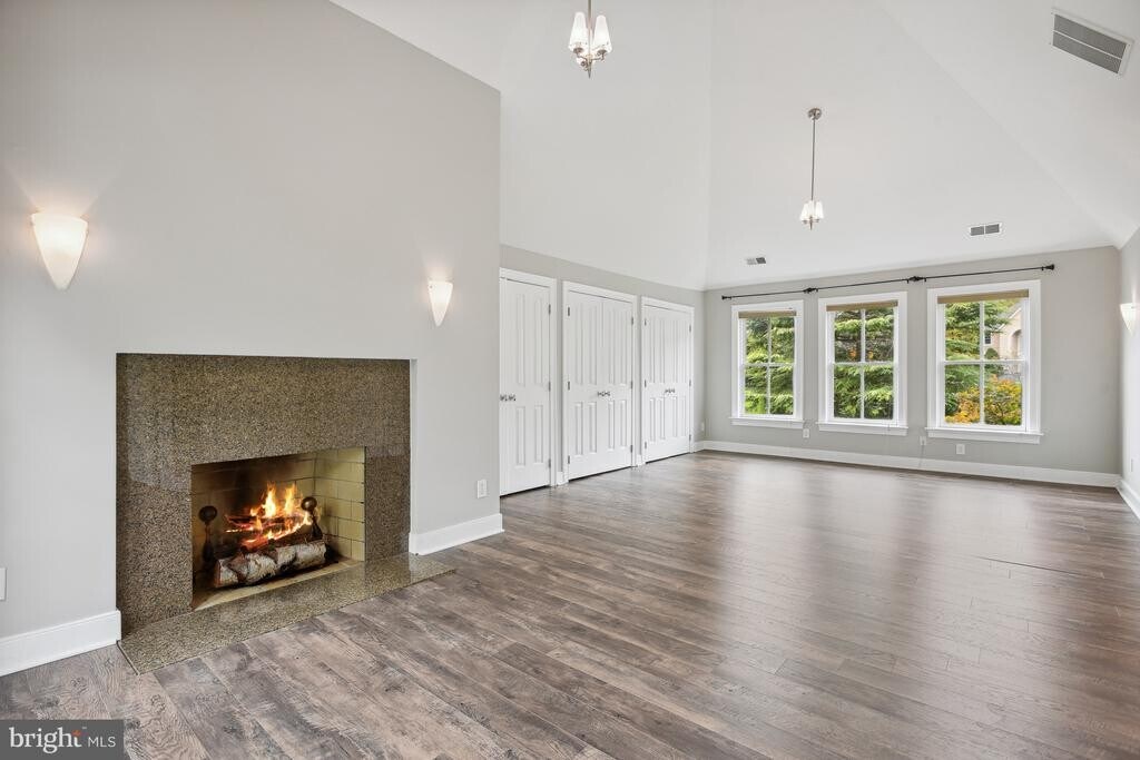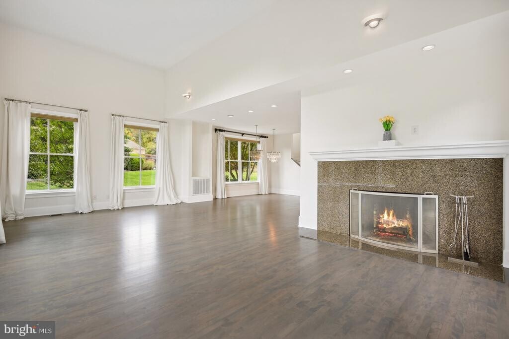 This exceptional property is peacefully situated in a cul-de-sac, mere minutes away from the Great Falls Village Shopping Center. It effortlessly harmonizes elegance, practicality, and the beauty of nature. The interior is flooded with natural light, adorned with lofty ceilings, and adorned with distinctive Turret windows that define its unique character. The main entrance foyer features impressive two-story columns and a striking brick front walk. To the left, a versatile space with Turret windows can become an elegant office or formal sitting area. French doors connect the brick patio, creating a perfect spot for entertaining in the living room with a contemporary granite fireplace. The second floor features four bedrooms, including a luxurious primary bedroom with cathedral ceiling, fireplace, private balcony, and a luxurious bathroom. The walkout basement offers entertainment space, a game room, and a well-appointed bar.