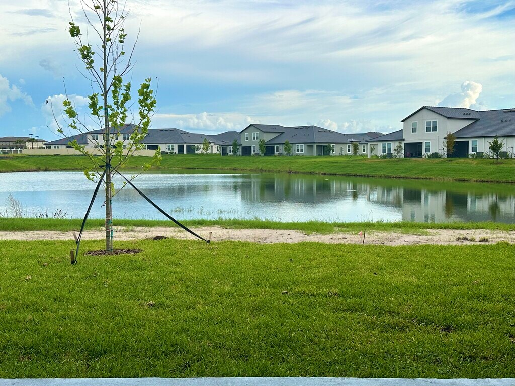 Home in a luxury Senior (55+ years old) community for rent !! Internet, cable and Lagoon included, saving you $150 per month. Beautiful pond view home located in the secure Medley gated community, one of Florida's top-rated Active Adult Communities. Situated in the stunning master-planned Mirada community, the Sunrise II model offers the convenience of single-story living. From the moment you step inside, you will be taken back the open airy great room with elegant porcelain tiles, upgraded light fixtures and fans, and immaculate light quartz countertops that accentuate the plentiful modern kitchen that features upgraded white cabinets, stainless appliances, pantry, and an oversized island with a breakfast bar, professional designed wall color - great for entertaining! Unwind and relax in your private master suite, complete with a large walk-in closet and bath en-suite with dual sinks, spacious shower and private commode. Welcoming second bedroom offering a private guest bathroom. A separate laundry room equipped with a washer, dryer, and cabinets for additional storage space. Enjoy the beautiful Florida weather on the screened serene pond view lanai. As a member of the Medley at Mirada Homeowners Association, residents have access to a private resort-style pool, fitness center, tennis courts, pickle ball courts, dog park, restaurant, outdoor sports bar, social hall, billiards, card rooms, and full-time activities directory. Additionally, residents can take advantage of the largest lagoon in the nation, offering a beach lifestyle complete with kayaking, swim up bar, sandy beach, walking trails and more activities. The HOA fee covers exterior painting, lawn maintenance, cable, high-speed internet, and a premium cable package. Downtown Tampa is 30 minutes away and Tampa International Airport is a 45-minute drive from Mirada. Also, nearby Mirada is the area's newest Premium Outlet Mall with Coach, Armani, Saks Off 5th, Ann Taylor, and many other upscale brands- The Grove at Wesley Chapel with its popular national and regional retailers, restaurants, and family entertainment, including Cobb Theatre's state of the art Cinebistro and coming soon The Grove's Container Park. Don't miss out on this opportunity to make this stylish villa your home! ** Tenant pays water, electricity, trash pick-up service ** Owner pays HOA and Lagoon access for everyone living in the house