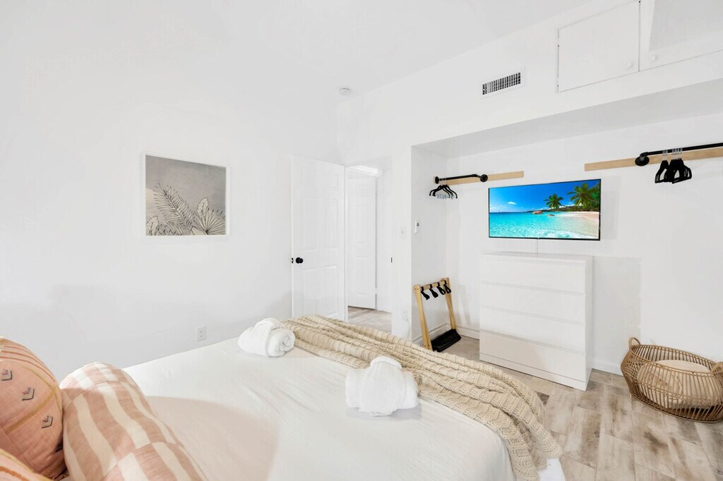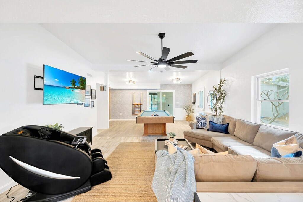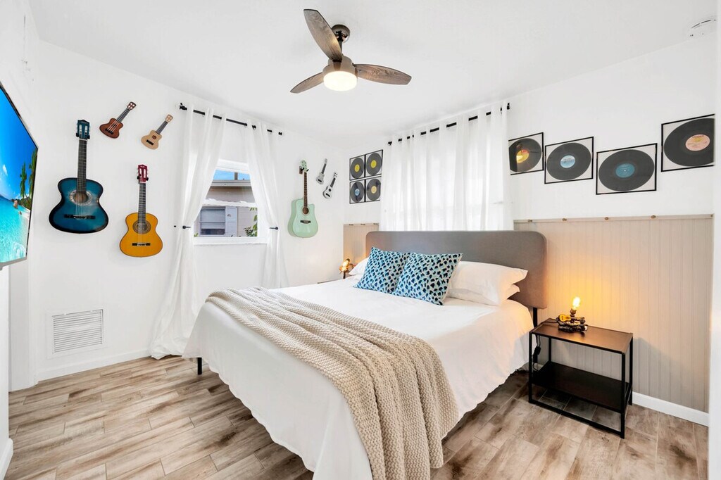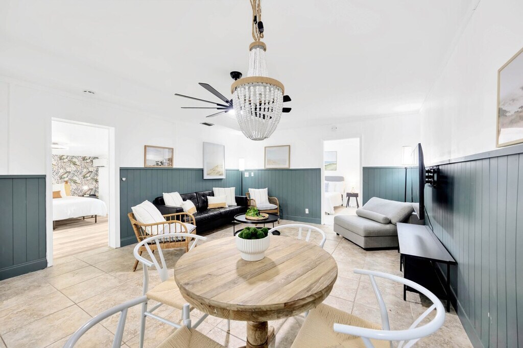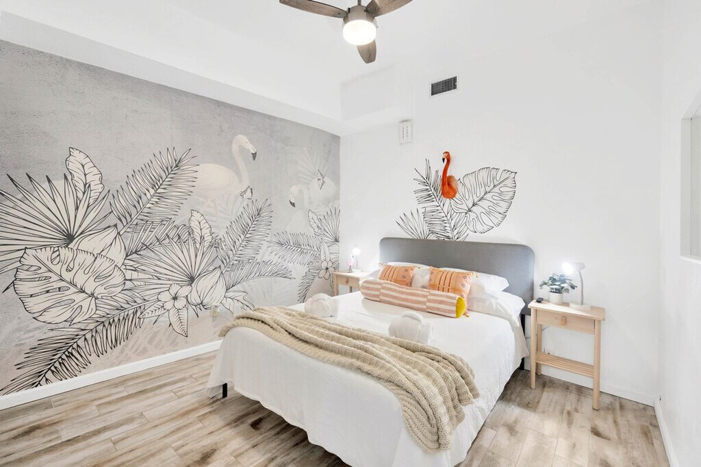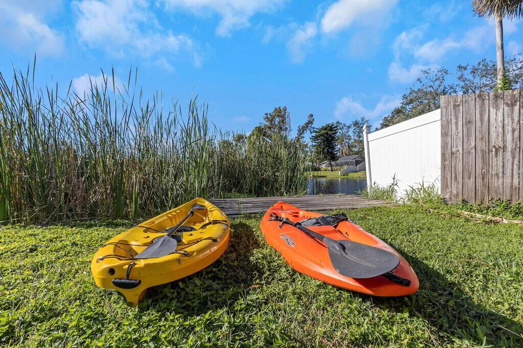 The advertised rate of $18,509/month is the lowest available price, based on a 1 month(s) stay with a move-in date of September 12, 2026. Rates vary depending on the duration of stay, season, and other parameters. For exact pricing and additional pricing components, please visit our website and enter your desired move-in and move-out dates. The rate is applicable when billed upfront; it can be higher if billed in multiple payments. Feel at home in this tropical oasis in St. Pete, FL, just 5 minutes from Madeira Beach. This 7-bedroom retreat, which includes a guest house, sits on a lake and features a heated saltwater pool, hot tub, barbecue area, fire pit, and dock. This property includes two side-by-side homes and features a spacious living room with soaring ceilings, a comfy sectional, a massage chair, and a giant HDTV. There are 7 uniquely themed bedrooms, each with its own charm. The bright, open kitchen has granite counters and everything needed to cook. Entertainment options include board games, a full game room with foosball, ping pong, shuffleboard, axe throwing, chess, pop-a-shot, and head-to-head arcade pong. There is also an 8-person hot tub, 4 beach chairs, a tiki hut with a barbecue, a heated pool, a guitar, and a Keurig coffee station. With two kitchens, you're fully equipped with a full-size refrigerator with water and ice dispenser, stove, oven, microwave, toaster, pots, pans, utensils, a gourmet knife set, spices, oil, salt, pepper, and a dishwasher. Free parking is available for multiple vehicles. You're 5–10 minutes from the area's best beaches and restaurants, including Aroy Thai & Sushi, Mama’s Kitchen, Taquitos Mexican, Mario’s Ristorante Italiano, The Conch Republic Grill, and Frog Pond. Nearby attractions include Archibald Beach Park, Treasure Island Beach, The Pirate Ship Royal Conquest, John’s Pass Village, The Dalí Museum, St. Pete Pier, Florida Holocaust Museum, Boca Ciega Millennium Park, and Sunken Gardens. Groceries and essentials are nearby at Walmart, Publix, Target, and Sprouts. The pool maintenance team comes by every Tuesday and Friday to clean, check, and maintain the pool. Florida’s tropical climate can occasionally invite small bugs, especially during the warmer months or after rain. While a high standard of cleanliness is upheld, it is recommended to keep doors and windows closed when not in use and bring insect repellent if you're sensitive to insects. Self check-in is available, allowing you to arrive anytime after 4PM with your unique code. [SI]