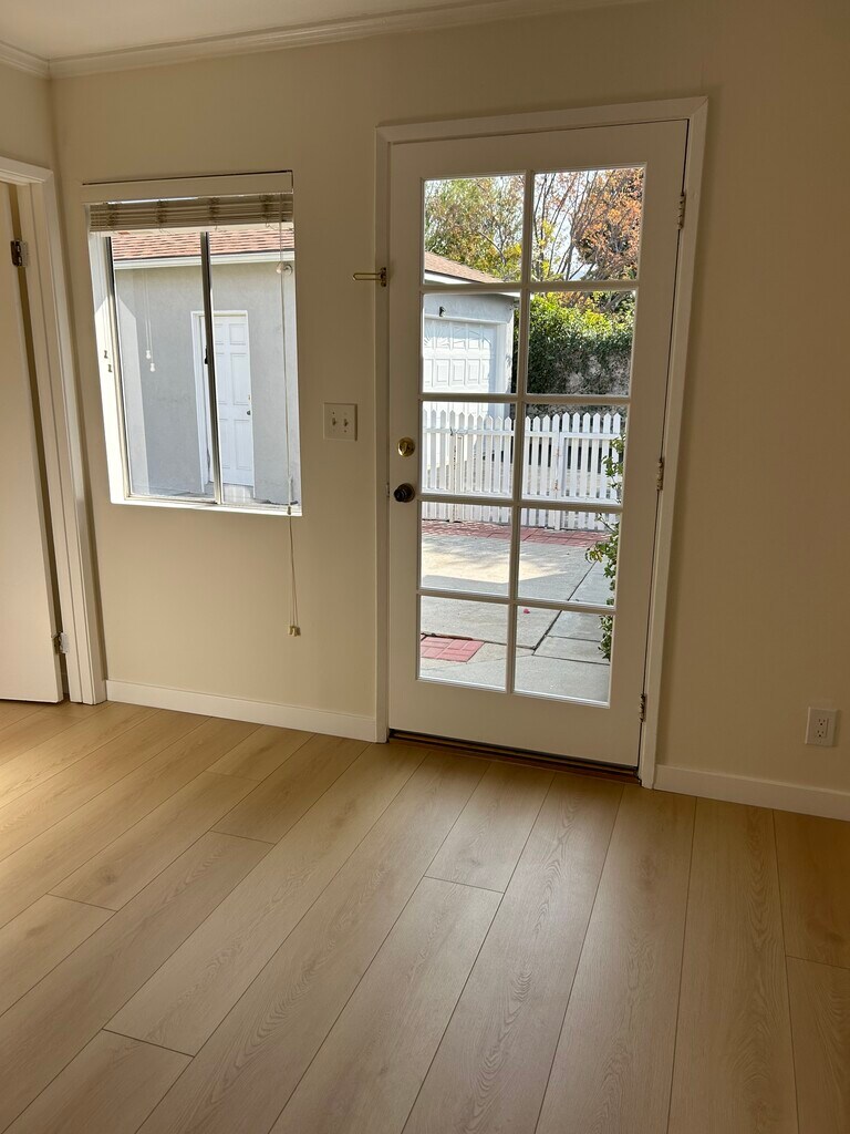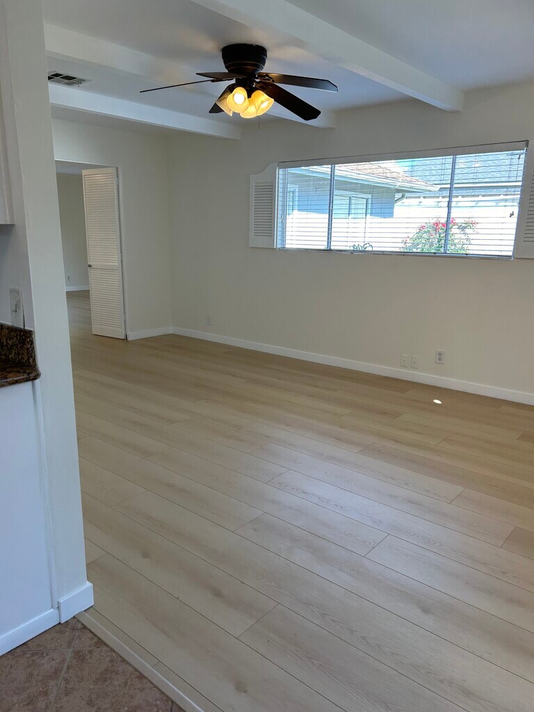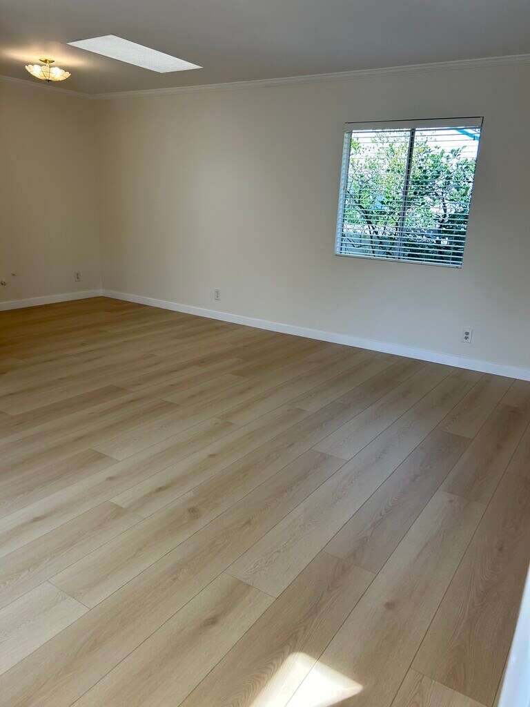 Beautifully spacious and well maintained home in great location in Sunland. 4 bedrooms, 2 newly remodeled bathrooms. Hardwood and new laminate flooring, new driveway, freshly painted exterior and interior. Newer AC, furnace and ducts. Newer washer and dryer in separate laundry room opposite the kitchen featuring a closet with tons of storage space. Lots of natural light. The floor plan of the house affords a lot of privacy. The floor plan includes 3 bedrooms in the front section of the house. The back section of the house features an exceptionally spacious primary bedroom with a private entrance and en-suite bath with a built in Bluetooth speaker and skylights. There is a bonus room behind the primary with a large walk-in closet. The kitchen features granite countertops, skylight, and a large pantry with pull out shelves. In addition to the beautiful living room and dining room the kitchen opens up into a spacious family room. Sound proofed two car garage can be enjoyed as a music studio or office or gym or storage. Long driveway provides ample parking and there is free street parking. Gardener provided. The backyard retreat, complete with a charming picket fence features a patio for relaxing and entertaining while enjoying the vibrant bougainvillea flowers and fruit from the orange and lemon trees. This tranquil neighborhood, just minutes to the 210 fwy and short drive to Burbank, Glendale, Pasadena provides a balance of serenity and convenience. Short walking distance to large park with tennis and basketball, baseball, skateboarding and picnic tables. Walk to the post office and elementary school. Grocery store and Starbucks nearby. Lovely neighbors. Enjoy nearby access to wonderful hiking trails in the breathtaking Angeles National Forest.