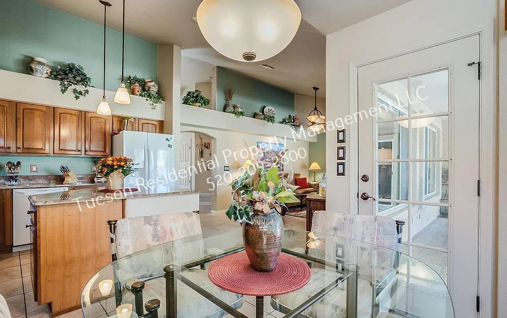 FULLY FURNISHED HOME - AVAILABLE 04/10/2026. Built 1992 - 3 BED, 2 BATH - 2027 SQ FT. Enjoy golf, tennis, racquetball, swimming, exercise gym, classes and more at the nearby Oro Valley Community Center and Golf Course at extraordinary affordable rates! Well-appointed 3 bedroom home with golf course views and pool. Formal living and dining areas as well as a cozy sitting room off the eat-in kitchen. Kitchen appliances include refrigerator, electric stove/oven, built-in microwave, dishwasher. Laundry closet with washer and dryer. Main bedroom features adjustable queen bed for your sleeping comfort, tastefully concealed elliptical trainer, walk in closet, en-suite bathroom with a jacuzzi/garden tub and separate shower. Computer workstation in 3rd guest room with king sized bed, 2nd bedroom has queen bed. Lovely hall bath. Pool completes the natural tranquility of the back yard. Pets subject to approval with additional deposit. $200 monthly utility allowance. Wi-Fi, basic cable $3,495 for 3 month lease minimum - summer rate, $2,000 minimum security deposit. Seasonal rates vary from May to November, call for availability. Please contact the leasing office for availability dates or if you have questions about the listing at: or call us at . To apply for this property please click on below link: