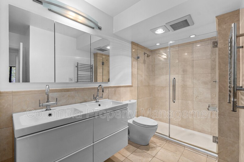 Tucked away just off M Street and steps from the C&O canal in Georgetown, this spacious two-bedroom two bath condo is steps away from countless dining, entertaining, and shopping attractions. Large windows overlooking a courtyard of mature trees provide ample natural light to the bedrooms and living spaces. An updated kitchen features granite countertops, new stainless steel appliances, and a new full sized front-loading washer and dryer. Positioned on opposite sides of the unit, each bedroom has its own ensuite bathroom with custom dual sink vanities. The primary suite bathroom features in-floor heating, frameless shower glass, and chrome finishes. The suite contains a vestibule with pocket doors that can be left open to allow the large walk-in space to be used as an oversized closet, den or home office with direct access to the living room. Note the walls have since been painted an off-white beige except in the kitchen and windows have vertical blinds. Tenants pay for electricity. Rent includes water and basic internet. Pets are permitted on a case-by-case basis and within association guidelines. One garage parking spot is included in the rent. 1077 30th Street NW is a Walker's Paradise with a Walk Score of 98 out of 100, so daily errands do not require a car. It is a 14-minute walk from the Foggy Bottom-GWU Metrorail station (Blue/Orange/Silver lines) and multiple major bus lines. This location, in the Georgetown neighborhood, is next to the Foundry, The Old stone House, Peter Square as well as everything the Georgetown Waterfront has to offer. All Columbia Property Management residents are enrolled in the Resident Benefits Package (RBP) for $45.95/month which includes: renters insurance, move-in concierge service for utility and home services set-up, AC and heating air filter delivery to your door, our best-in-class resident rewards program, credit building to help boost your credit score, $1Million policy for Identity Protection and much more! The first month's rent and a security deposit equal to one month's rent are due before moving in. More details upon application. For more information, a 3d Tour and to see all our available rentals, visit our website. This rental is professionally managed by Columbia Property Management.