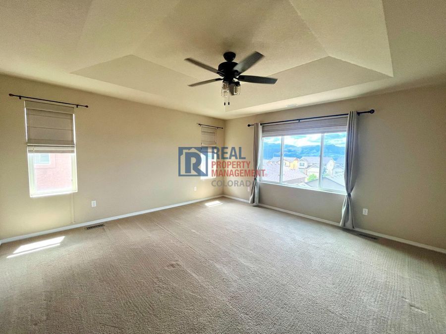 You won't want to miss out on this Stunning North Fork home! Located in the coveted D20 school district, this home sits on a street with amazing views from both the front and back yards! You are welcomed in by the lovely covered front porch and lush green yard. Upon entering you will find a large office/flex space just off the front entry. This home features a formal dining room as well as an oversized eat in kitchen, which boasts granite counter tops, ample cabinet and pantry space, a double oven and an extra large refrigerator. The open concept living room features a gas fireplace and a walkout out to a large deck. The main level features hardwood flooring and a surround sound speaker system throughout. Upstairs you will find a sprawling loft/flex area, perfect for an entertainment or play space. There are 2 spacious secondary bedrooms, a full bath (with double sinks!) and a large laundry room with counter space and a sink. The primary suite boasts jaw dropping views of Pikes Peak as well as vaulted ceilings and plenty of windows for natural light. The large walk in closet has been thoughtfully designed with ample shelving and storage space. The attached bath boasts a large soaking tub, double sinks, a water closet and an oversized shower. Downstairs on the lower level you will find a huge second living room, complete with a wet bar! This area features a walkout to the lovely covered patio, which boasts a fire pit with built in seating. There is a 4th bedroom with an extra large walk in closet and another full bath with double sinks as well. If the inside of this house wasn't great enough outside you will find a gorgeous yard with lush green grass, beautiful landscaping and raised garden beds. There is an oversized deck with amazing views of the mountains. It even features a retractable awning for those extra sunny days! This home has ease of access to Powers Blvd, Interquest pkwy and I25. It is within close proximity to schools, parks and shopping! It is less than 10 miles from the Air Force Academy and less than 50 miles from Denver! -Pets with owner approval (subject to pet deposit and/or pet rent). -Tenant pays all utilities -Washer and dryer on site Below is a summary of all mandatory and optional charges associated with this property. Some totals are calculated based upon disclosed averages and may not be reflective of the final cost, which varies based upon usage, insurance premiums, etc. Please consult with your insurance agent, utility provider, etc., for additional information. Real Property Management Colorado cannot guarantee the accuracy of costs that vary, including renters’ insurance premiums, utility costs, and community or association fees charged outside of Real Property Management Colorado. MANDATORY CHARGES: -Rent: $3100 -Utilities: Variable. -Renter’s Insurance: Variable -Application Fee**: $55/adult -Security Deposit***: $3100 -Building Fees: $0 -Parking Fees: $0 OPTIONAL CHARGES: -Pet Rent: $35 or 1.5% of the rent amount. -Pet Deposit: $300 TOTAL MONTHLY COST: $3,135.00 TOTAL ONE-TIME COST: $3,455.00 **Please see the details below regarding Portable Tenant Screening Reports Colorado Springs Equal Opportunity Housing All leases subject to application, administration and processing fees. Prices and availability subject to change. Real Property Management Colorado, LLC cannot verify the accuracy of property information listed on third party sites. Please visit Real Property Management Colorado, LLCs website to confirm property information. The prospective tenant(s) have the right to provide to Real Property Management Colorado a portable tenant screening report, as defined in section 38-12-902 (2.5),Colorado revised statutes; and if the prospective tenant(s) provide Real Property Management Colorado with a portable tenant screening report, real property management Colorado is prohibited from charging the prospective tenant(s) a fee for real property management Colorado to access or use the portable tenant screening report. In order to qualify, prospective tenant's application must be considered complete and include the following documents at the time of submission: a completed application for everyone 18 and older, unexpired government issued photo-ids, proof of income, a signed brokerage disclosure, and a portable tenant screening report containing credit, rental history, and criminal background information within the last 30 days and showing the prospects' name, contact information, verification of employment and income, and last known address. Applicants who do not submit a completed application based on the above will be considered incomplete and will not be considered for the property. Loft Mountain Views Office/Study Trash/Recycling Walk In Closets Wi Fi/Internet