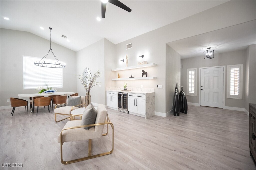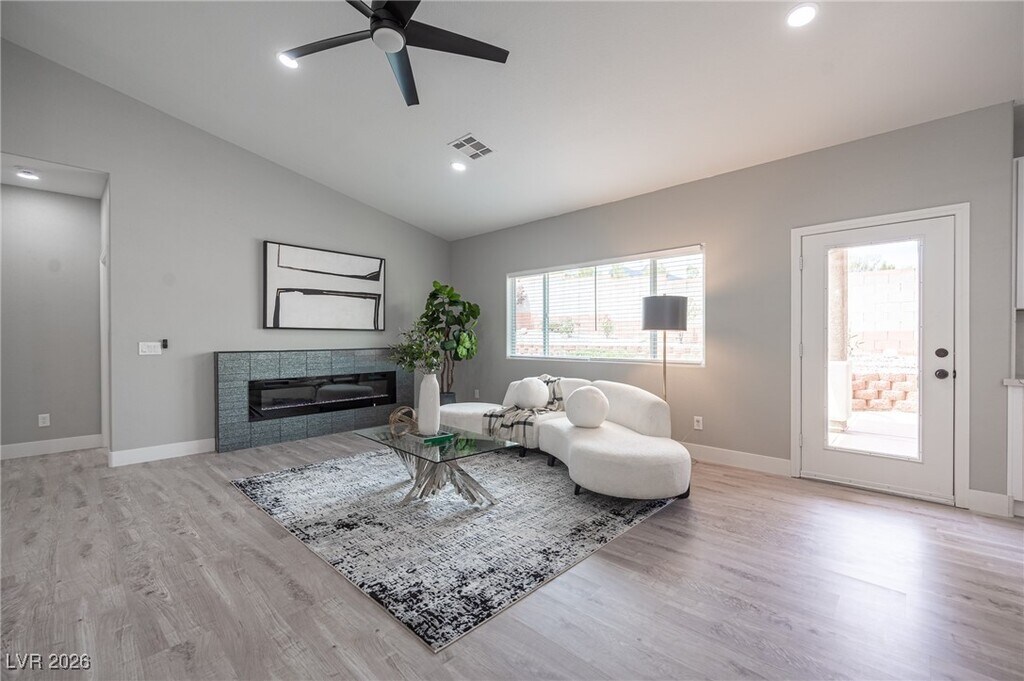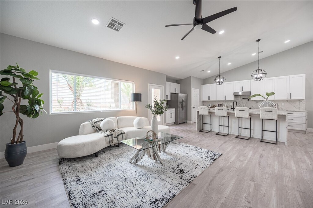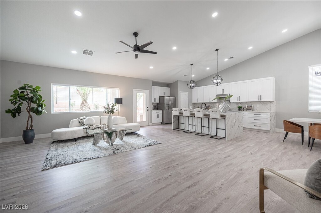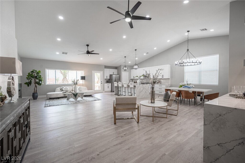 Stunning single story located in the Summerlin Community of Cypress Pointe. Close to Summerlin Parkway & Anazasi. Loaded with all the top-of-the-line upgrades! Home just underwent an extensive no expense spared 200k+ in custom renovations. Home has been updated and upgraded with the finest of finishes! Completely remodeled kitchen with massive island with extensive use of of quartz throughout. Custom Bar with Built in Wine-fridge, all new soft-close cabinetry and upgraded mill-work Throughout, fully renovated bathrooms & finishes throughout. All new and upgraded fixtures through out! Home has highly upgraded flooring throughout, with NO carpet! Spa, all new low maintenance landscape in front & back yard. Best of all includes a fully paid for solar system with Little to NO electric bills! Very hard to find with these upgrades in a single story for lease! Won't Last. Professionally Property Managed by Hudson Real Estate.