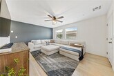Like-new 4-bedroom end-unit townhome in a gated community! Step inside to find luxury vinyl plank flooring throughout (no carpet!) and faux wood blinds in every room. The home comes equipped with brand-new Whirlpool washer and dryer plus a full suite of smart features: Ring doorbell and security system, smart thermostats, garage door opener, front door lock, and more. Additional upgrades include a Kinetico drinking water system, tankless water heater, and whole-home water softener. Modern kitchen with GE stainless steel appliances, quartz countertops, and tons of counter space. Relax on your private patio with no side neighbors. The 2-car garage and driveway provide plenty of parking, with extra guest spaces right across the street. Fantastic location with parks, playgrounds, and the Skye Hills walking trail and pickleball courts just steps from your door. Easy access to the 215 freeway. Pets welcome with owner approval.