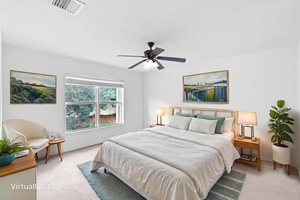 Updated corner-lot home in gated Greystone, Boynton Beach. Features include 2-car garage, vaulted ceilings, split bedroom layout, accordion shutters, ceramic tile & carpet, modern appliances, abundant natural light, and new AC (2023). Virtual photos highlight possible updates. Owner allows cosmetic changes such as painting with approval, giving flexibility for tenants. Property also presents opportunity for those exploring future ownership. Community amenities: fitness center, soccer, sand volleyball, basketball, tennis, pool, picnic area & more. Close to shopping, dining, recreation & beaches.Disclaimer - All MLS info deemed reliable but not guaranteed; subject to errors/changes. Buyers/Agents to verify.