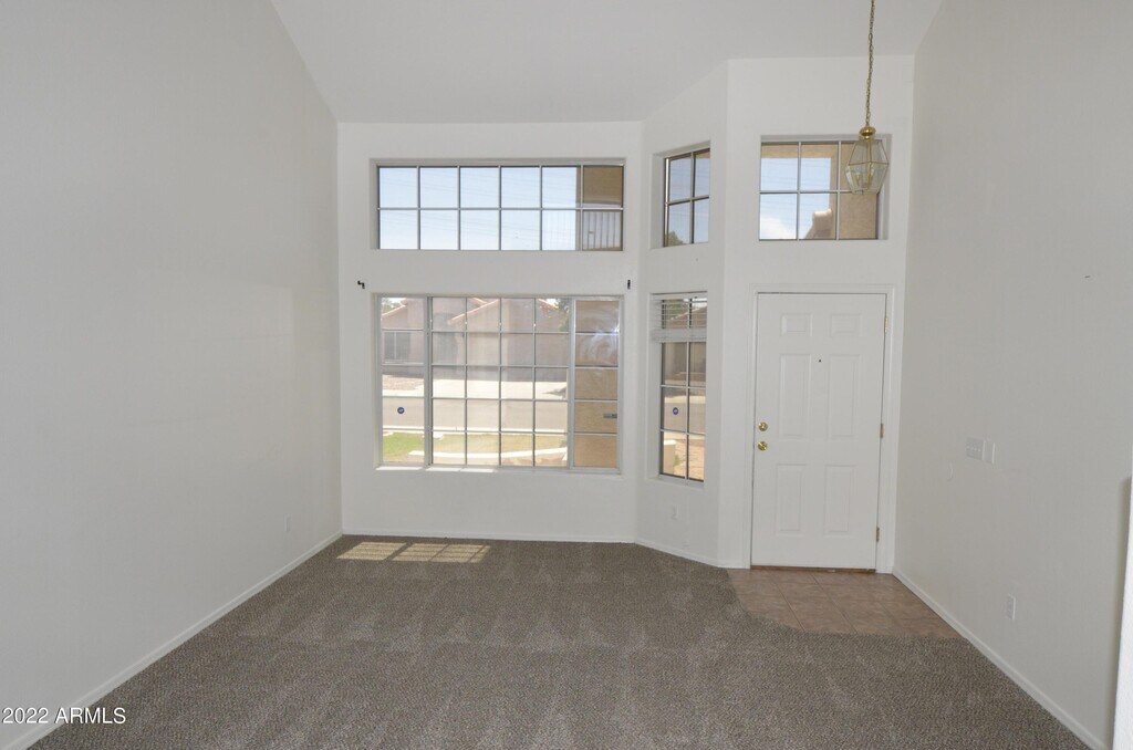 Spacious 3 bedroom 2.5 bath home including loft w/white spindle rail & oak banister overlooking formal living room w/soaring vaults. Huge master w/walk-in closet & window seat,Open & bright kitchen w/tile flooring opens to family room w/ entertainment niche,surround sound & fireplace. Ceiling fans in most rooms,surround sound pre-wire in remainder of home. Recent interior paint. New Flooring through out. Covered patio w/recess lighting and ceiling fan. Walk to elem. school & McQueen Park-Rec Center. Close to shopping,freeway,amenities. Must See to Appreciate.