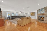 Must see Wellington Estate on over 5 acres, perfect blend of luxury, privacy & resort-style seasonal living. Just minutes from equestrian showgrounds & polo fields. Main house offers 5 bdrms, 3.5 baths, chef-inspired kitchen, brick fireplace & primary suite overlooking heated resort-style pool. Private guest house features 2 bdrms, 1 bath, spacious living area & game room. Outdoor spaces include a large covered patio, tiki hut (w/ electric), Chicago brick pavers, tranquil pond with fountain, gazebo & dock for sunset relaxation, bocce and basketball courts. Fully fenced with electric gate, impact windows, propane generator & 2 covered parking areas--fully equipped for a seamless, luxury seasonal experience. Welcome to Your Home Away from Home!