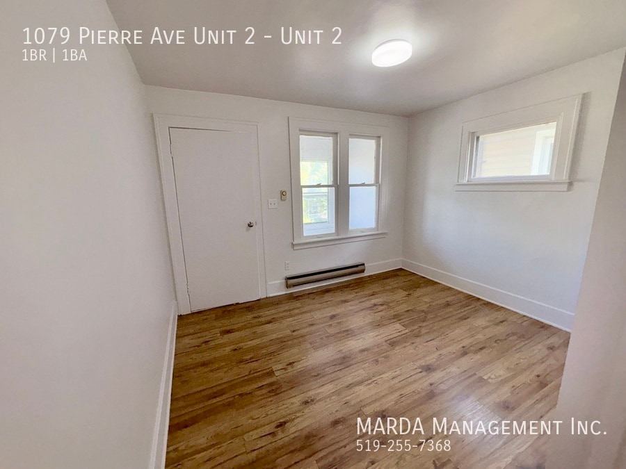 Welcome to 1079 Pierre Unit 2, a charming 1-bedroom, 1-bathroom upper unit in the desirable Walkerville / Little Italy neighbourhood. This freshly painted apartment offers a cozy and functional layout with natural charm. The home features a bright bedroom with a spacious closet, a 3-piece bathroom with a stand-up shower, and a comfortable living room. The kitchen comes equipped with a fridge, stove, and cabinetry for storage, while the wood panel flooring adds warmth throughout. A sunroom provides additional living space filled with natural light. Located just minutes from Erie Street, youll have groceries, restaurants, and entertainment within walking distance, as well as easy access to Giles Blvd, Lanspeary Park, and nearby bus routes Ottawa 4 and Central 3. Tenant responsible for hydro and gas. First and last months rent and a credit check are required. Professionally managed by MARDA Management, offering 24/7 maintenance support with live agents and easy, hassle-free rent payment options. Call MARDA MANAGEMENT today at 519-255-RENT or email to schedule your viewing! Freshly Painted Laminate Flooring No Smoking Allowed Pet Friendly