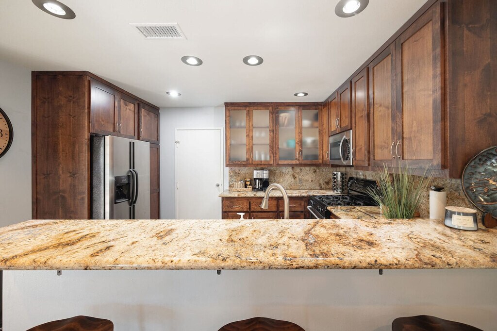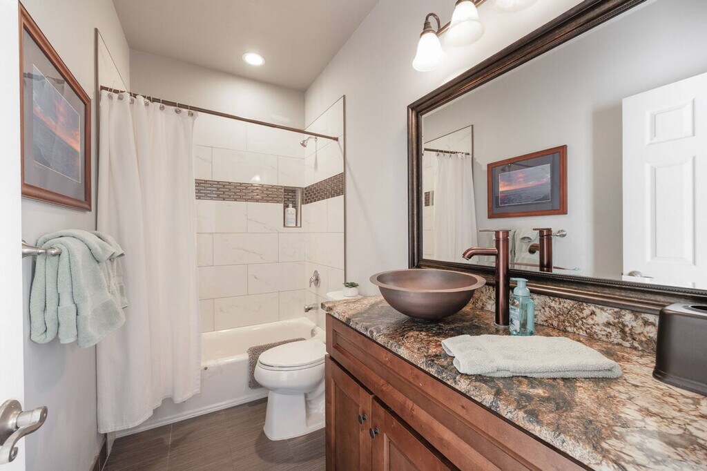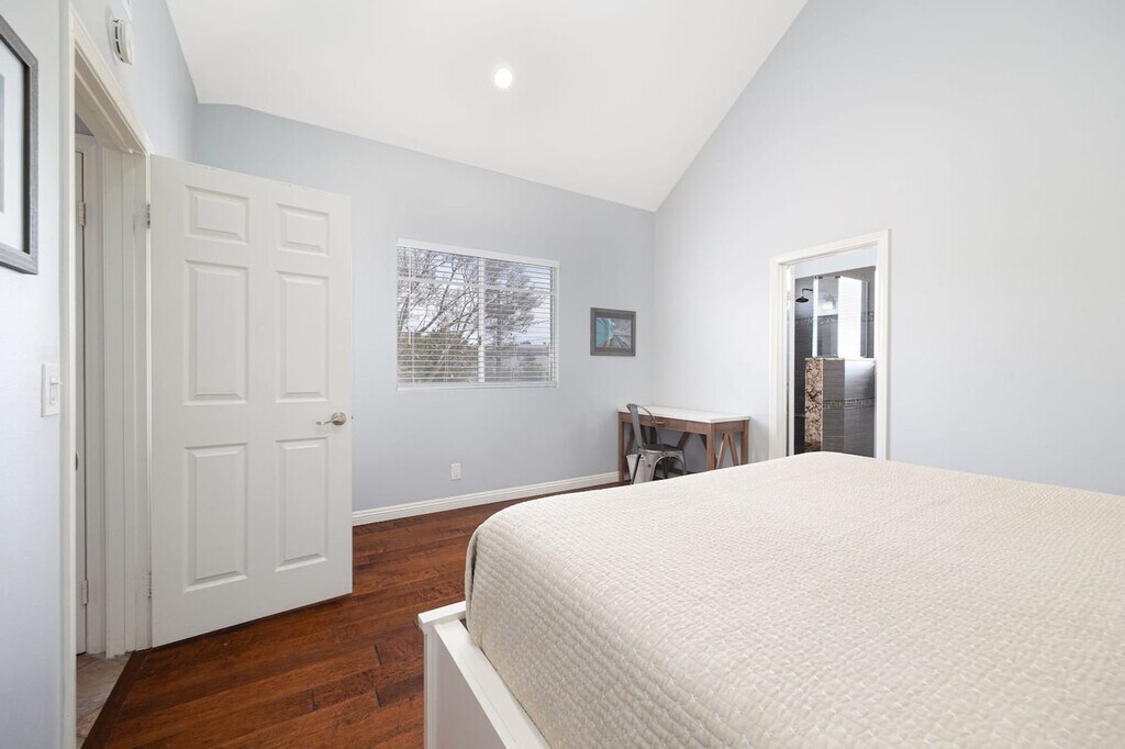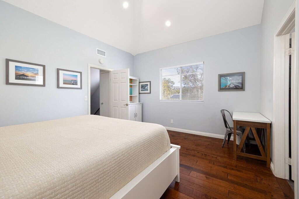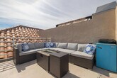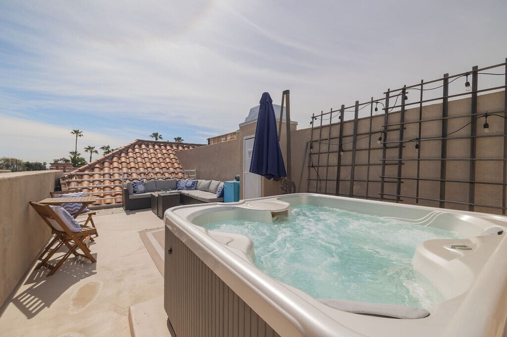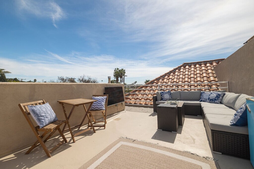 Feel at home in this two-story modern townhome, your ideal San Diego retreat, perfectly situated in the highly sought-after North Pacific Beach neighborhood. This spacious townhome features a fully equipped kitchen with pots, pans, dishes, glassware, wine glasses, silverware, a coffee pot, a Keurig, and a toaster. The highlight of the home is the private rooftop deck, a fantastic spot for both kids and adults, featuring a hot tub, comfortable outdoor seating, a cafe table, a flat-screen TV, and a mini-fridge. Ask about baby gear rental for $79, which includes a high chair, pack n' play (baby crib), sheets, blanket, toys, books, and other items can be arranged for an additional fee. You'll be just four blocks from the ocean and a short walk from the area's best restaurants, cafes, and nightlife. The home is also within walking distance of Tourmaline beach, a popular surfing spot. Please do not put anything other than toilet paper down the toilets, as you will be charged for any clogged toilets. When taking a shower in the master bathroom, the hot water is very hot and it takes about a minute to heat up. Please keep the noise level down at night since there are a lot of families in the neighborhood. The TV is covered with a tarp to protect it against the salty air, so keep the cover secured to the TV when not in use. To avoid plumbing issues, please do not put large amounts of food, grease, or anything else down the sink, as you will be charged for any sink backups caused by you. Trash day is on Mondays, so if you don't mind placing the trash bins marked “1079” in the alley on Sunday night, the blue bin is picked up every other Monday. Registration Number: STR-04394L, 644700 [SI]