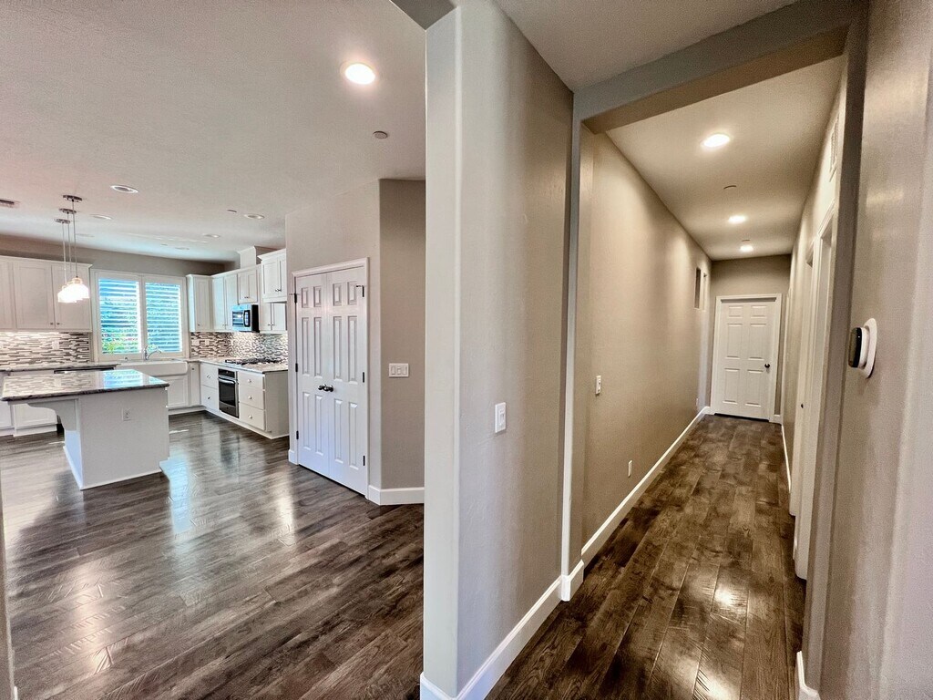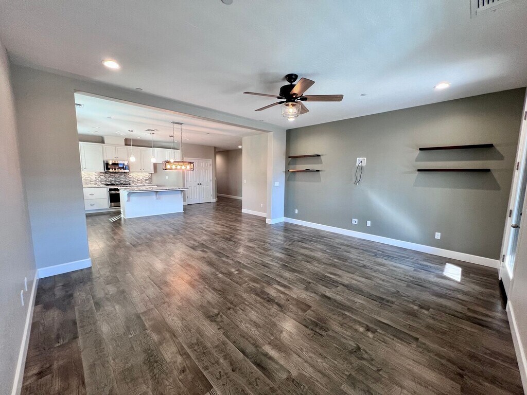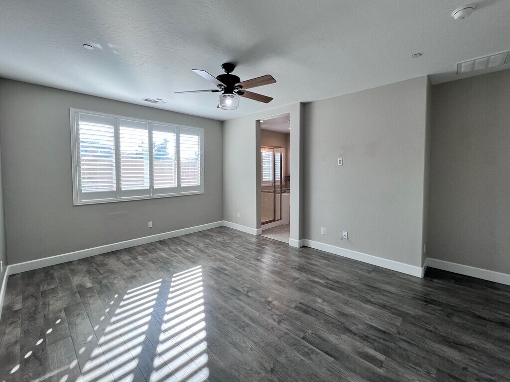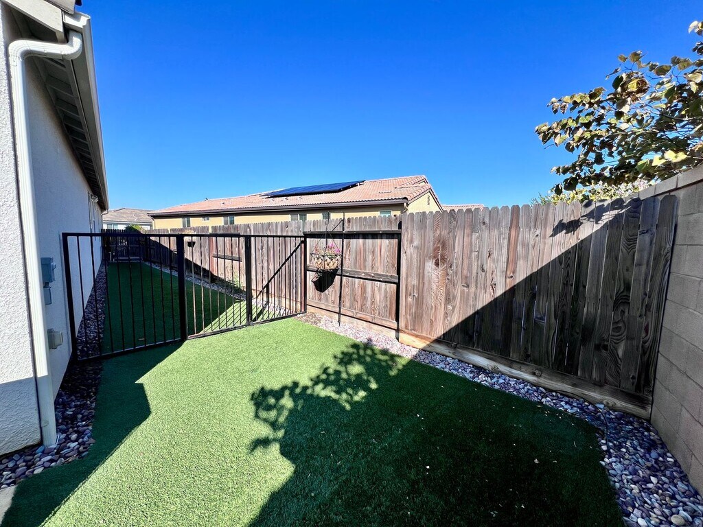CLICK HERE to schedule a showing: 3 Bedroom | 2 Bathroom | 1,855 Sq. Ft. | Built in 2018 Experience luxury living in this open-concept home featuring a flex room, a sparkling pool, and solar panels. Woodside build located in the Sky Meadows gated community. Open kitchen featuring extended counters & cabinetry, pantry, breakfast bar, gas range stove and oven, built-in microwave, and dishwasher. Dining area with accent lighting and spacious living area with lots of natural light. Wood laminate flooring throughout. Flex room that can be used for multiple purposes. Primary bedroom includes large walk-in closet, bathroom with 2 vanities, separate soaking tub, walk-in shower, and private toilet room. 2 additional bedrooms with walk-in closets. 1 guest bathroom with shower/tub combo. Ceiling fans throughout. 2 car attached garage. Laundry room featuring a utility sink and ample cabinet space, electric and gas hook ups. Spacious backyard including a fully fenced pebble-tech heated pool, a large covered patio, gazebo, multiple fans, gated side yard with synthetic lawn and storage shed. Yard care included. No pets. Credit score above 650 REQUIRED. No smoking. Tenant responsible for all utilities. Solar panels, tenant pays PG&E and TrueUp. HOA included. Cross streets Barstow & Leonard. Renter's insurance is required. Clovis School district. Call to schedule a showing or to contact the office. DRE# 01901101. All information is deemed reliable but not guaranteed and is subject to change.
