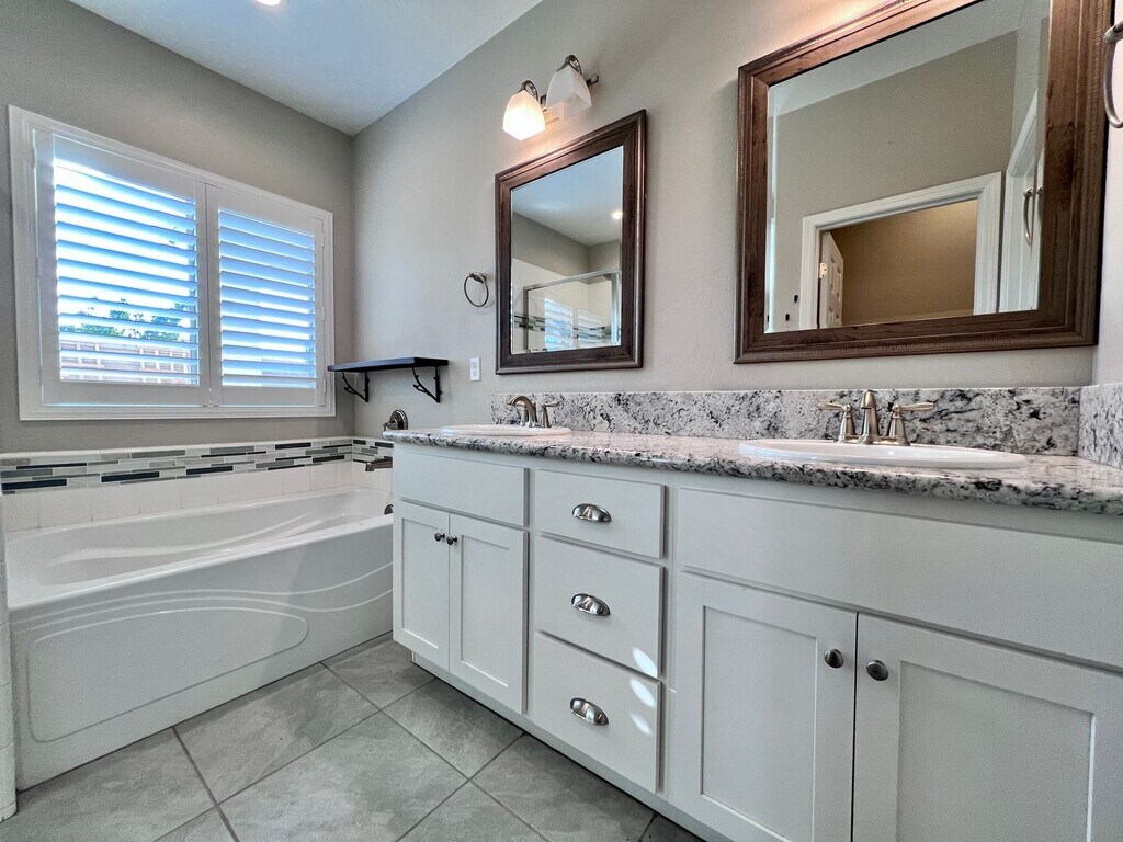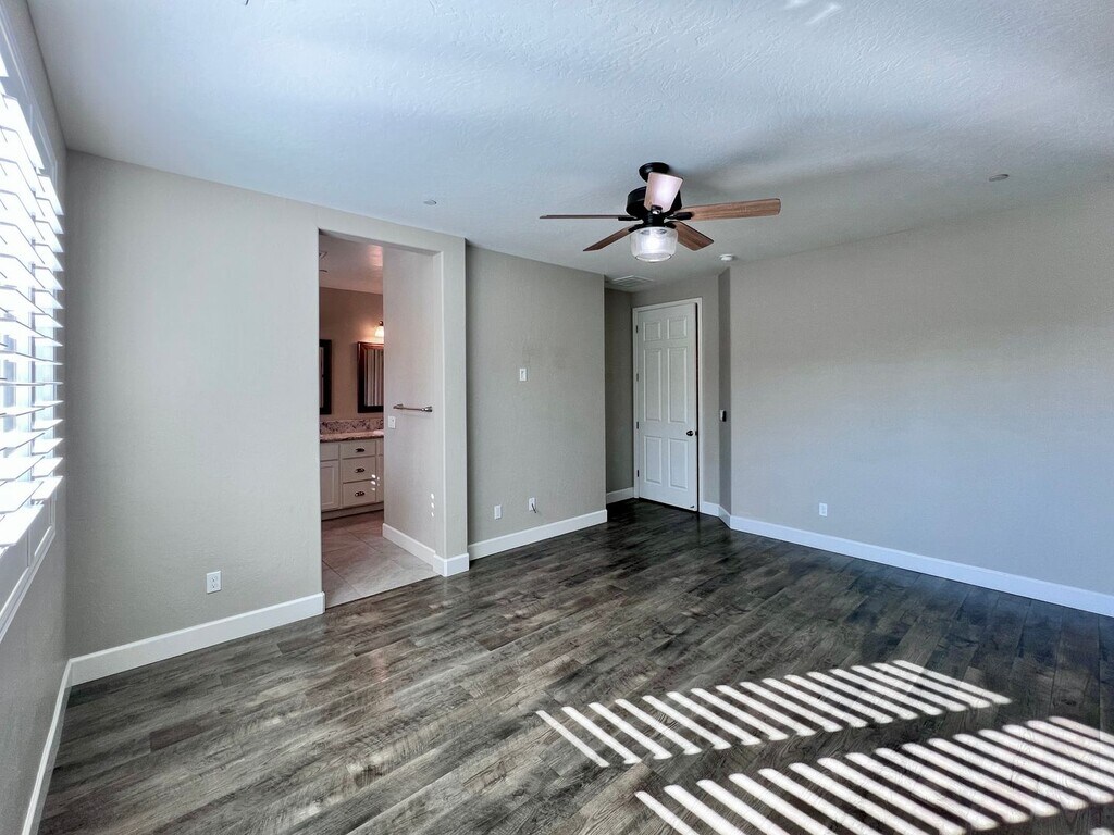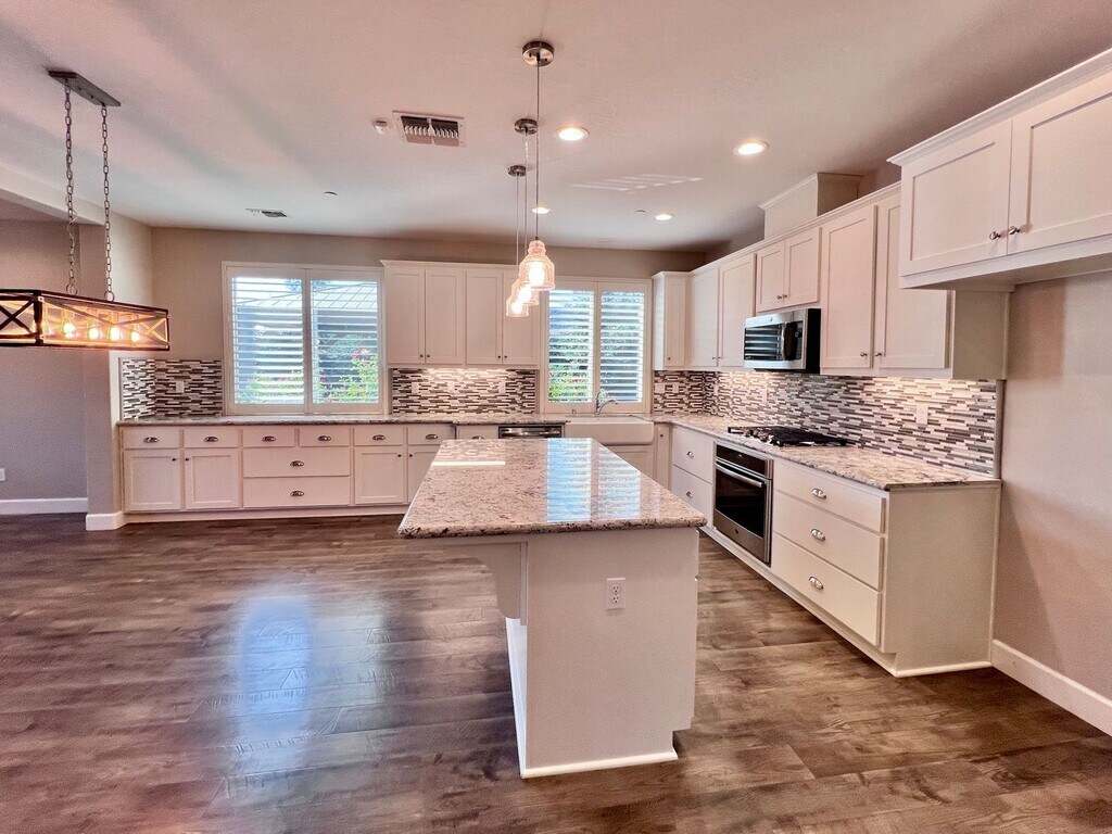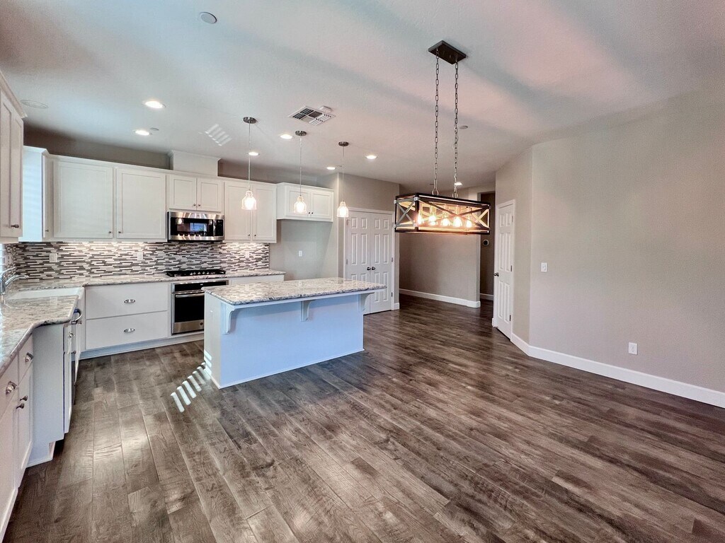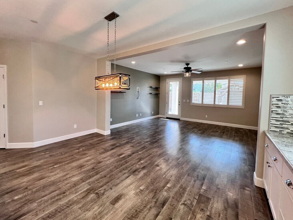 CLICK HERE to schedule a showing: 3 Bedroom | 2 Bathroom | 1,855 Sq. Ft. | Built in 2018 Experience luxury living in this open-concept home featuring a flex room, a sparkling pool, and solar panels. Woodside build located in the Sky Meadows gated community. Open kitchen featuring extended counters & cabinetry, pantry, breakfast bar, gas range stove and oven, built-in microwave, and dishwasher. Dining area with accent lighting and spacious living area with lots of natural light. Wood laminate flooring throughout. Flex room that can be used for multiple purposes. Primary bedroom includes large walk-in closet, bathroom with 2 vanities, separate soaking tub, walk-in shower, and private toilet room. 2 additional bedrooms with walk-in closets. 1 guest bathroom with shower/tub combo. Ceiling fans throughout. 2 car attached garage. Laundry room featuring a utility sink and ample cabinet space, electric and gas hook ups. Spacious backyard including a fully fenced pebble-tech heated pool, a large covered patio, gazebo, multiple fans, gated side yard with synthetic lawn and storage shed. Yard care included. No pets. Credit score above 650 REQUIRED. No smoking. Tenant responsible for all utilities. Solar panels, tenant pays PG&E and TrueUp. HOA included. Cross streets Barstow & Leonard. Renter's insurance is required. Clovis School district. Call to schedule a showing or to contact the office. DRE# 01901101. All information is deemed reliable but not guaranteed and is subject to change.