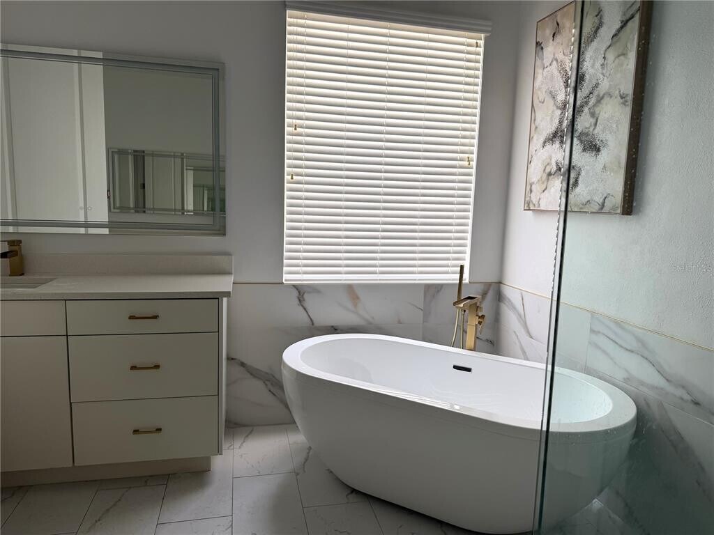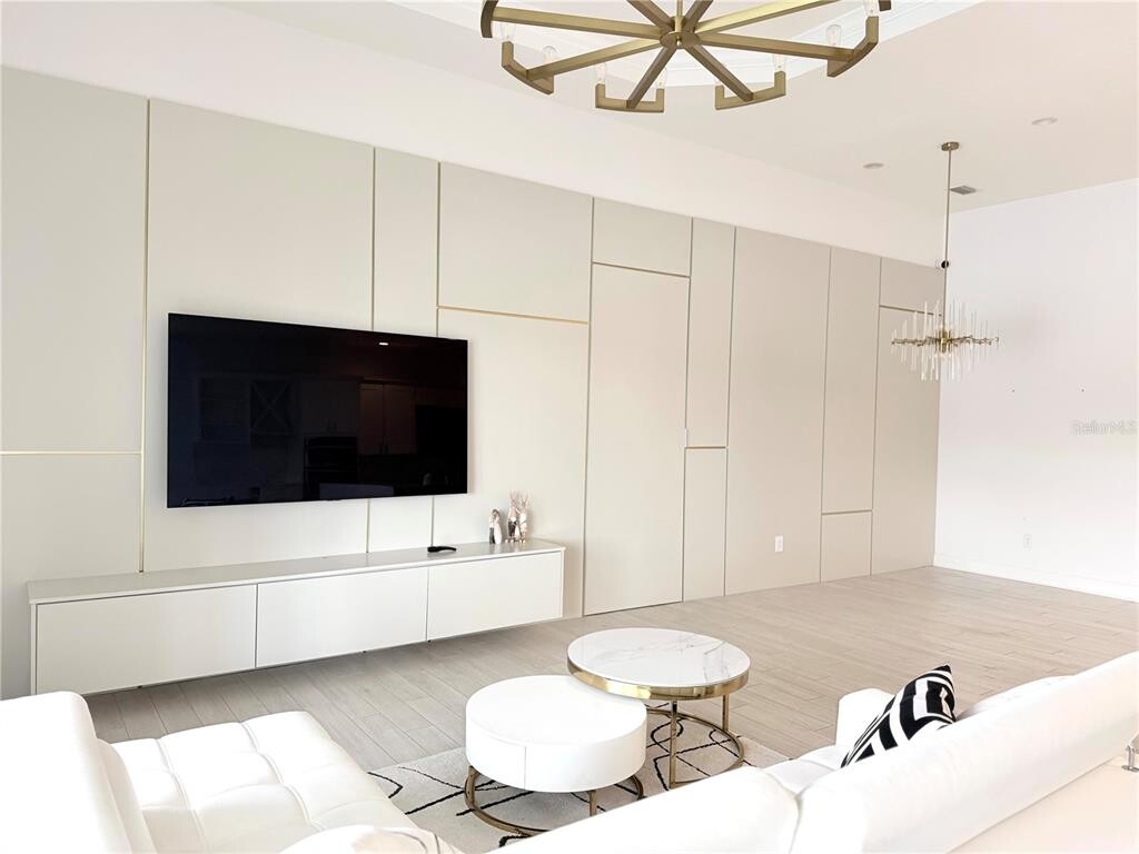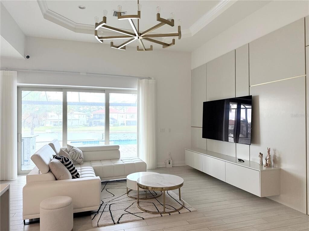 Luxury Water View Home for rent Live in style in this stunning Orlando-area estate featuring designer interiors,soaring ceilings,and gold accents throughout. The chef’s kitchen boasts a quartz waterfall island,double wall ovens,and a wine cooler. The spa-like primary bath includes a freestanding soaking tub and frameless glass shower. Outside,enjoy a screened waterfront lanai with a pool,in-water sun loungers,a raised spa,and a fully equipped outdoor kitchen — perfect for year-round entertaining. Each bedroom features custom wallpaper,accent walls,and unique designer lighting. 2-car garage included. MLS# O6399732