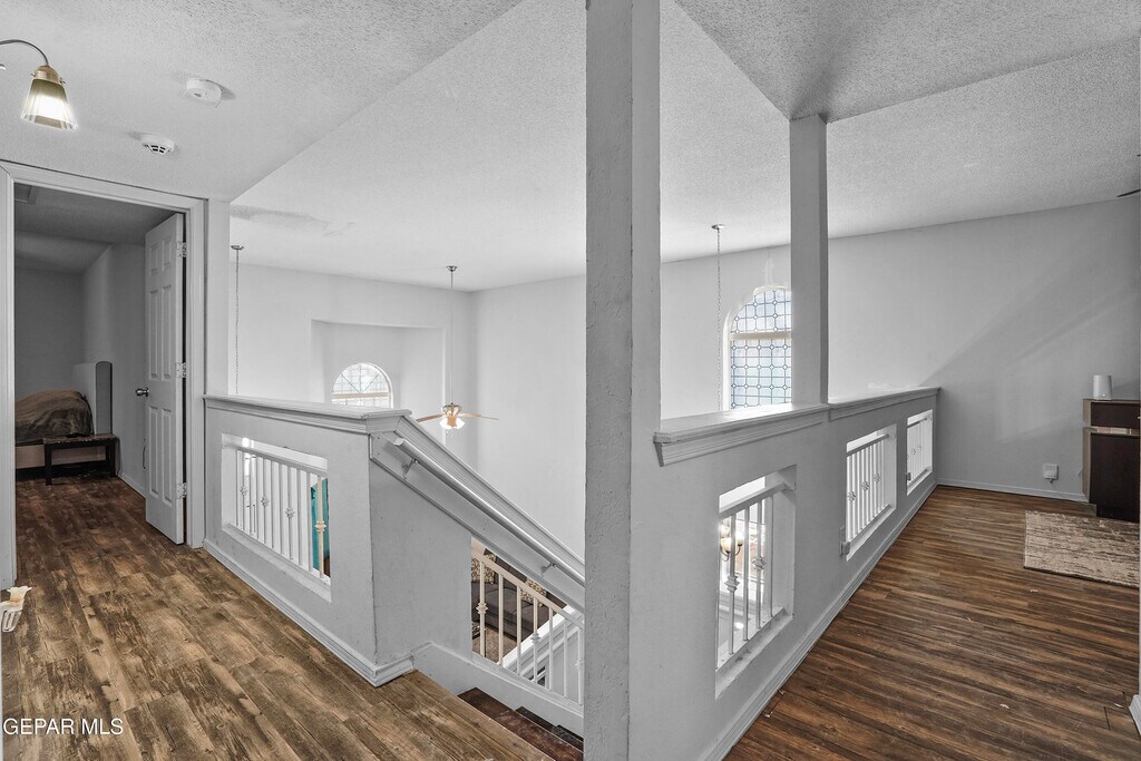 Lovely two-story home in the Painted Dunes neighborhood featuring 3 bedrooms,2½ bathrooms,and around 2,049 sq ft of living space. Tucked into a quiet pocket of the community with only one adjacent neighbor,this property backs up to a private complex and offers serene mountain views,artificial turf,and a fenced yard with an above‑ground pool . The main level boasts multiple living areas including a spacious living room with fireplace and a flexible loft space that could serve as an office or fourth bedroom . Enjoy a bright kitchen with breakfast area,tile and laminate flooring throughout,double-pane windows,and a two-car garage. Ideal for entertaining or flexible family living,this home balances comfort,privacy,and scenic views in Northeast El Paso.