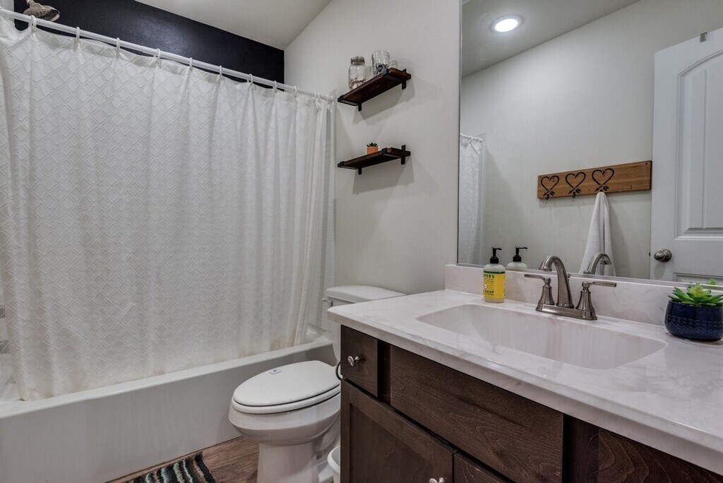 Escape to your perfect family getaway in Sanger, TX! Just minutes from Lake Ray Roberts, you'll feel at home unwinding by the cozy fire pit, swinging under the stars, or challenging friends with the arcade machine. This centrally located home is close to fantastic fishing, boating, and hiking, and just a drive away from casinos and more. Walkable downtown and parks are under 2 minutes away, offering everything you need for a convenient, easy, and fun getaway. Whether you are passing through or coming for a vacation, this 3-bedroom, 2-bathroom home is a perfect fit. Welcome to your Sanger paradise, just 10 minutes away from the lake and close to downtown. This home features a fully equipped and stocked kitchen, a cozy living room with a Roku Smart TV and indoor electric fireplace, and a dining area with seating for six. The bedrooms offer comfortable sleeping arrangements with a queen bed in the master, a full bed in the second bedroom, and twin bunk beds in the kids' room, which also includes an arcade machine. The two bathrooms are well-appointed, with a private bathroom connected to the master. The garage, linen closet, and laundry room are not accessible, but laundry room access can be granted for longer stays or if needed. The garage is used for storage by the owners, who may need to access it occasionally, but you will be informed beforehand. Located just 5 minutes from local favorites like Babes Chicken, Revival Brewery, Uptown Creamery, Town Center Park, and Dandy Donuts, this home is ideally situated for exploring the area. A short drive will take you to Lake Ray Roberts, Denton, and the WinStar Casino, making it a great base for your adventures. Each bedroom is equipped with fans to provide white noise, as the home is close to train tracks. The community has many children, and while the neighbors have been informed that this is now a short-term rental, children may occasionally visit. A neighbor's child will take care of the garbage, so you don't have to worry about taking it to the curb. For those who need to work remotely, the home offers a workspace to accommodate road-warriors.