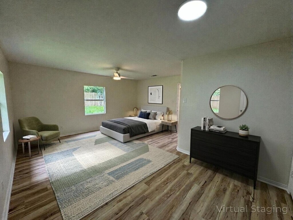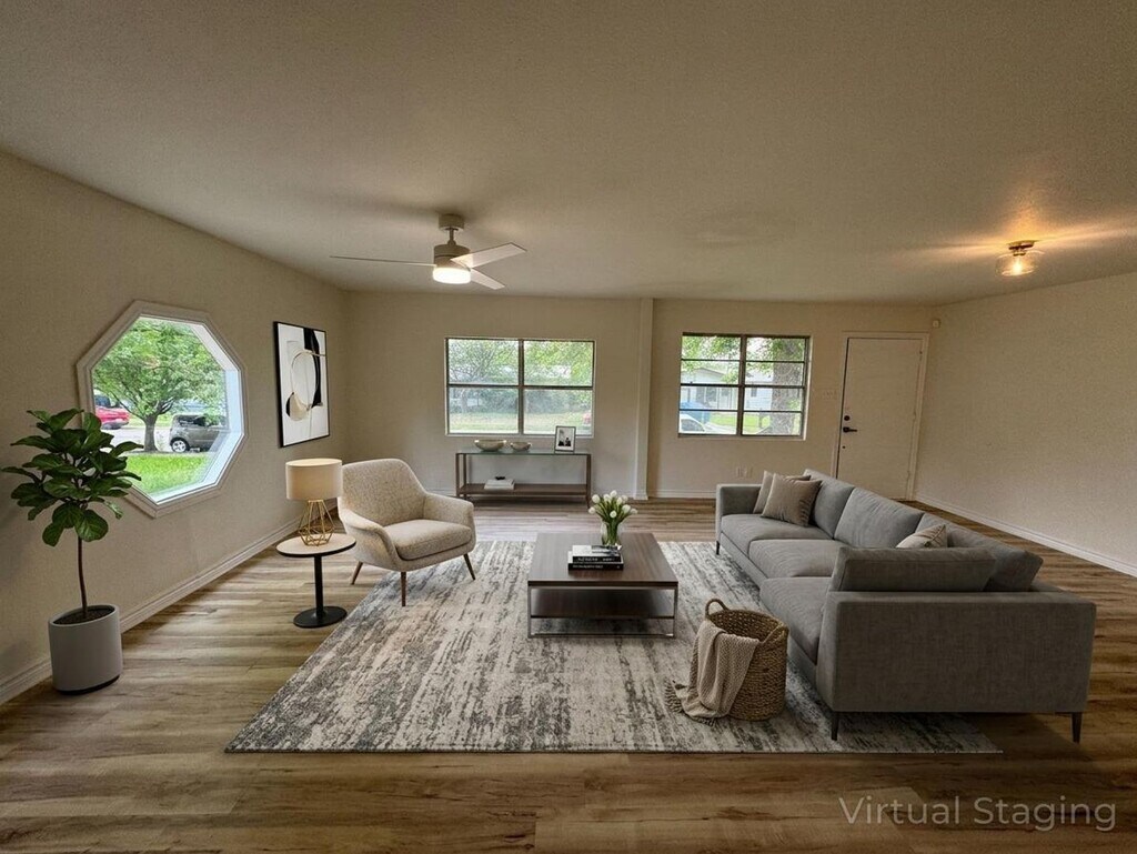 View 360° virtual tour: This well-designed home features vinyl plank flooring throughout, offering a cohesive look and easy maintenance while complementing the fresh, neutral interior paint. The flowing floor plan creates a natural transition between spaces, highlighted by a spacious living area, an extra-wide galley-style kitchen, and a formal dining area. Additional features include updated bathrooms, a separate primary suite positioned toward the back of the home, a wrap-around driveway, and mature trees that enhance the outdoor setting. Appointments aren't required to tour. Contact us or stop by our Killeen office to learn more and see this home in person once it becomes available! We are located at 1020 W Jasper Drive, Killeen, TX 76542. Disclaimer: The furnishings or enhancements shown are AI-generated and intended for inspiration only. They may not reflect the actual scale, condition, or current features of the property.