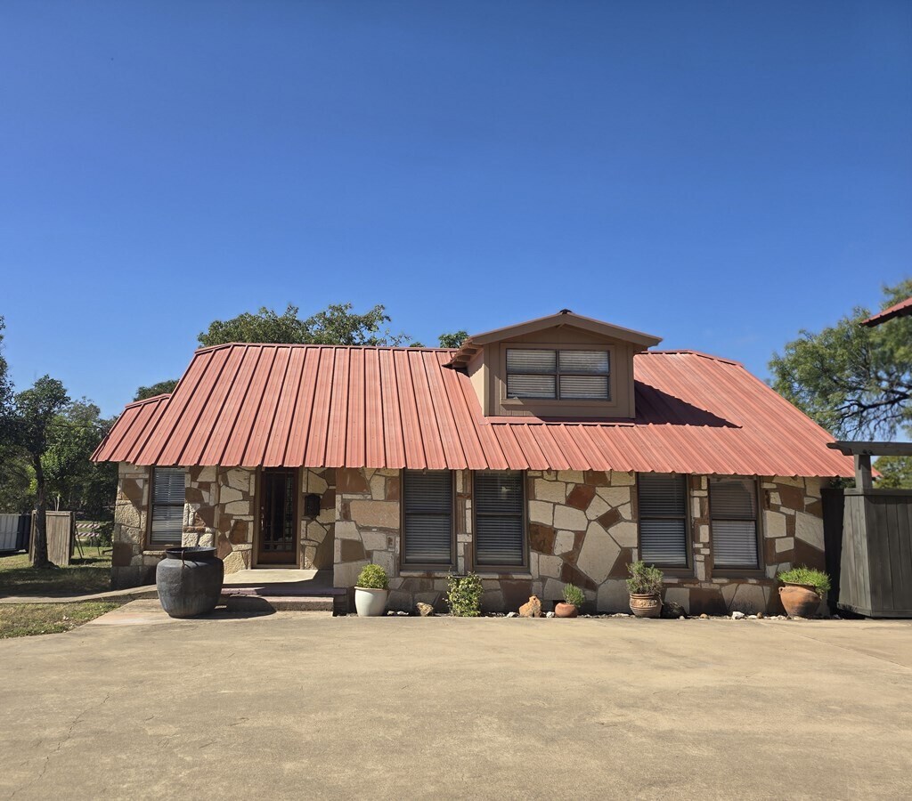 FOR LEASE: Charming 1-bedroom, 1-bath cottage within walking distance to downtown Kerrville, restaurants, shopping, and the scenic Guadalupe River Trail. Enjoy morning walks along the river or relax with a beverage while taking in views of the majestic cypress trees and water. This stone cottage has been completely remodeled and is ideal as a long-term residence or a small professional office, thanks to its mixed-use zoning. The interior features beautiful wood floors, a brand-new kitchen with new appliances (including stove and refrigerator), and a nicely updated bath with a shower/tub combo. A separate living area offers flexibility for an office or additional lounge space, and the upstairs loft provides convenient storage. Outside, a charming gazebo overlooks peaceful Hill Country views. Call today to schedule your showing!