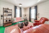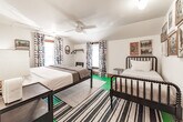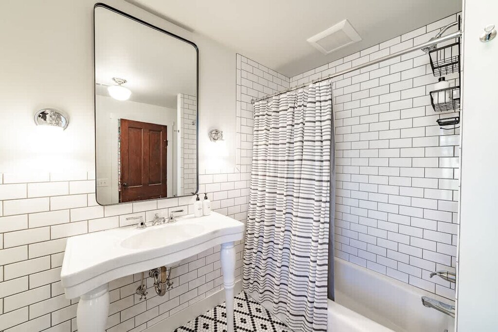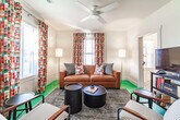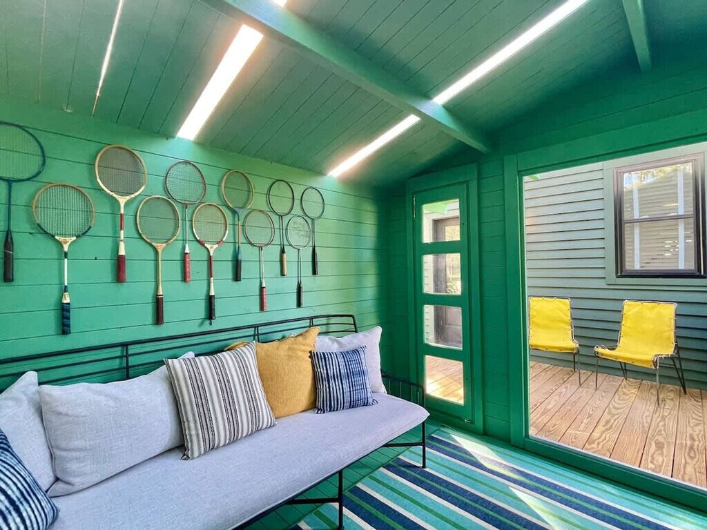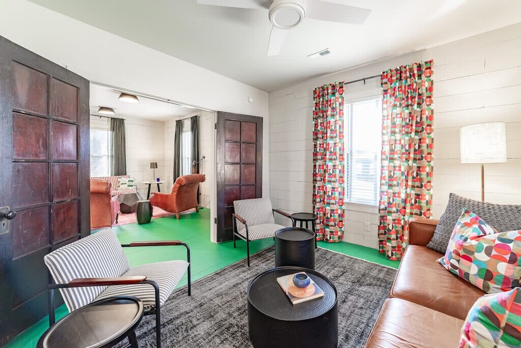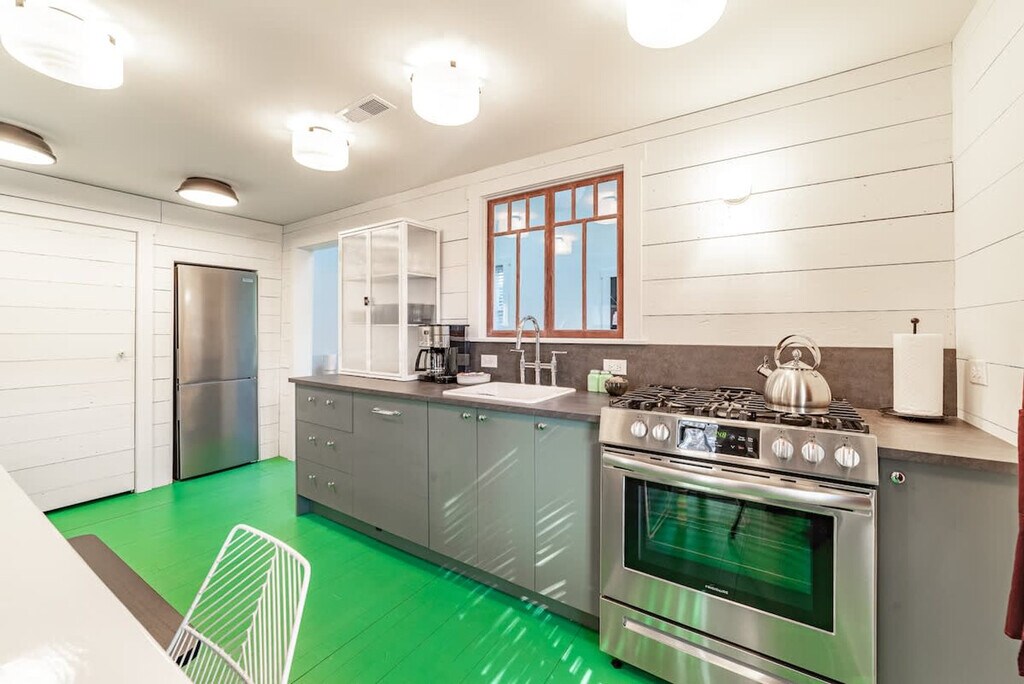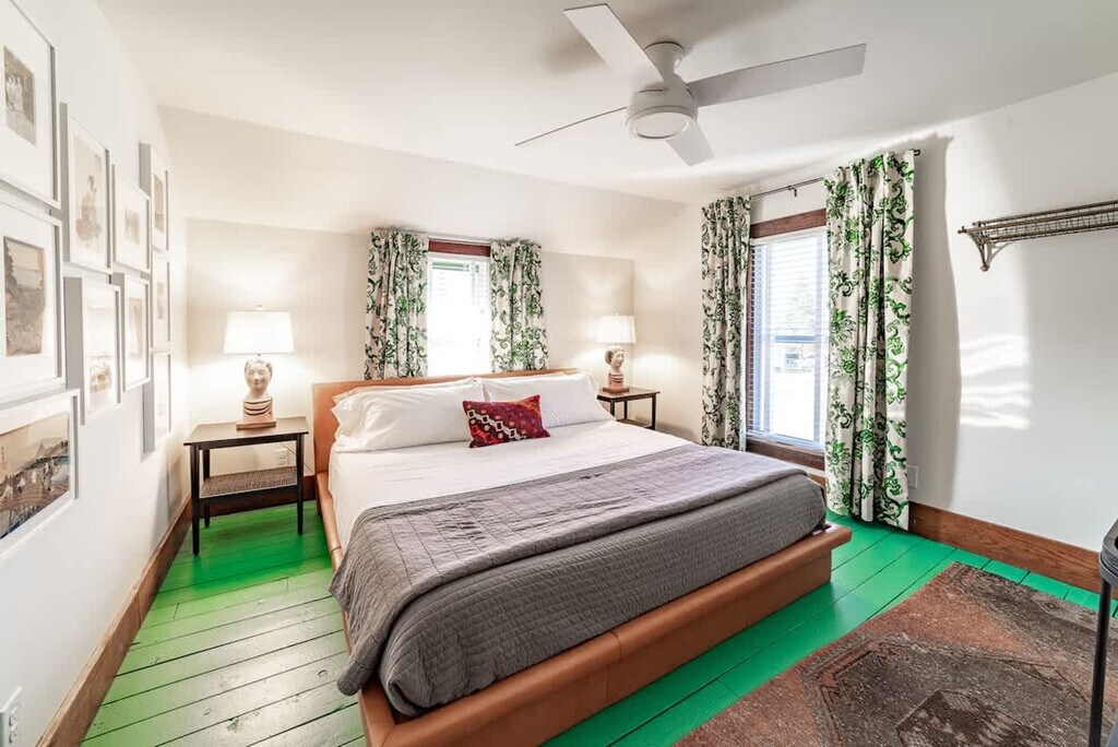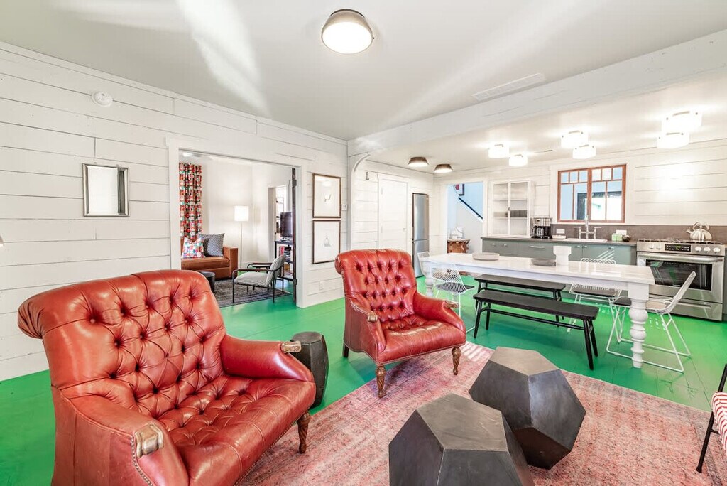 Feel at home in this beautiful, stylish, and basically brand-new home from the 1870s. This home features 3 bedrooms and 2 baths to accommodate up to 7 guests and is conveniently located one block from Three Oaks Main Street and adjacent to the Journeyman Distillery. Professionally designed, this home features multiple spots to entertain and relax, including indoor and outdoor dining tables, comfortable beds, and great Wi-Fi. The main floor features a charming vestibule, an open-concept living room, a dining room for 8, a kitchen, a cozy den with a TV, and a unique double-height rear addition. The exterior features a striking solid wood lodge building that comfortably holds 6 people for TV or game playing, a long outdoor dining table for 8, a firepit, and a unique outbuilding devoted to yard games. All of the furnishings are premium, and the art collection is like nothing else on the local market. Please note that the grill, outdoor furniture, fire pit, and exterior lodge are not available between mid-November through the end of April. The neighborhood directly surrounds the Journeyman Distillery and event center. In true Michigan resort town fashion, the neighborhood is a welcoming mix of affluent second-home owners, homes that are rented, and local residents who have lived on the street for years. The village of Three Oaks has on-street parking restrictions in place for 2–5 AM. It is recommended that all guests park in the driveway area. Please show respect to the neighbors by limiting outside noise after 10 PM and do not play amplified music outside of the home at any time. The village has strict rules regarding outdoor fires; please keep the screen tightly fitted over the top of the firepit. Do not host additional friends or have any kind of party without prior permission. The property is absolutely non-smoking on the inside, and smoking is not allowed in the outdoor buildings. Any indoor smoking will incur a fine of $250. For any guests looking to use recreational marijuana, it is advised that you research local laws about how to do so legally. [SI]